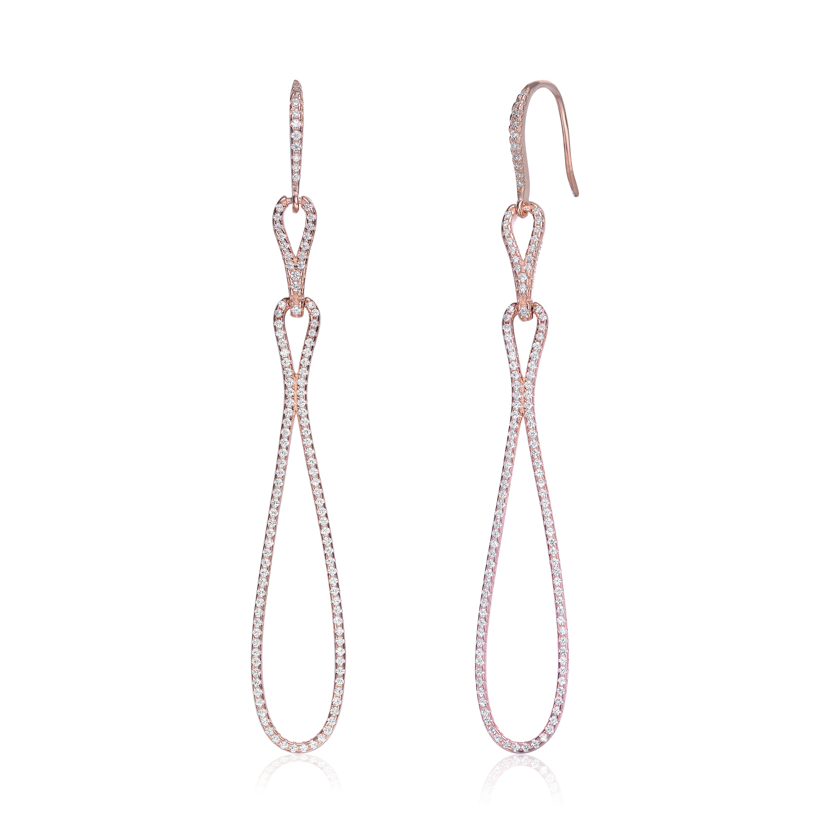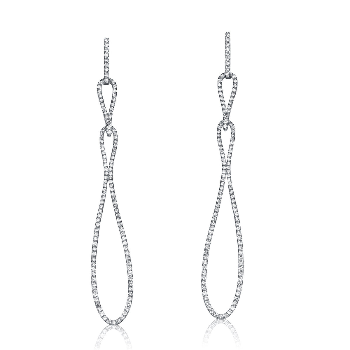 CZ SS Rhodium Plated Long Teardrop Earrings