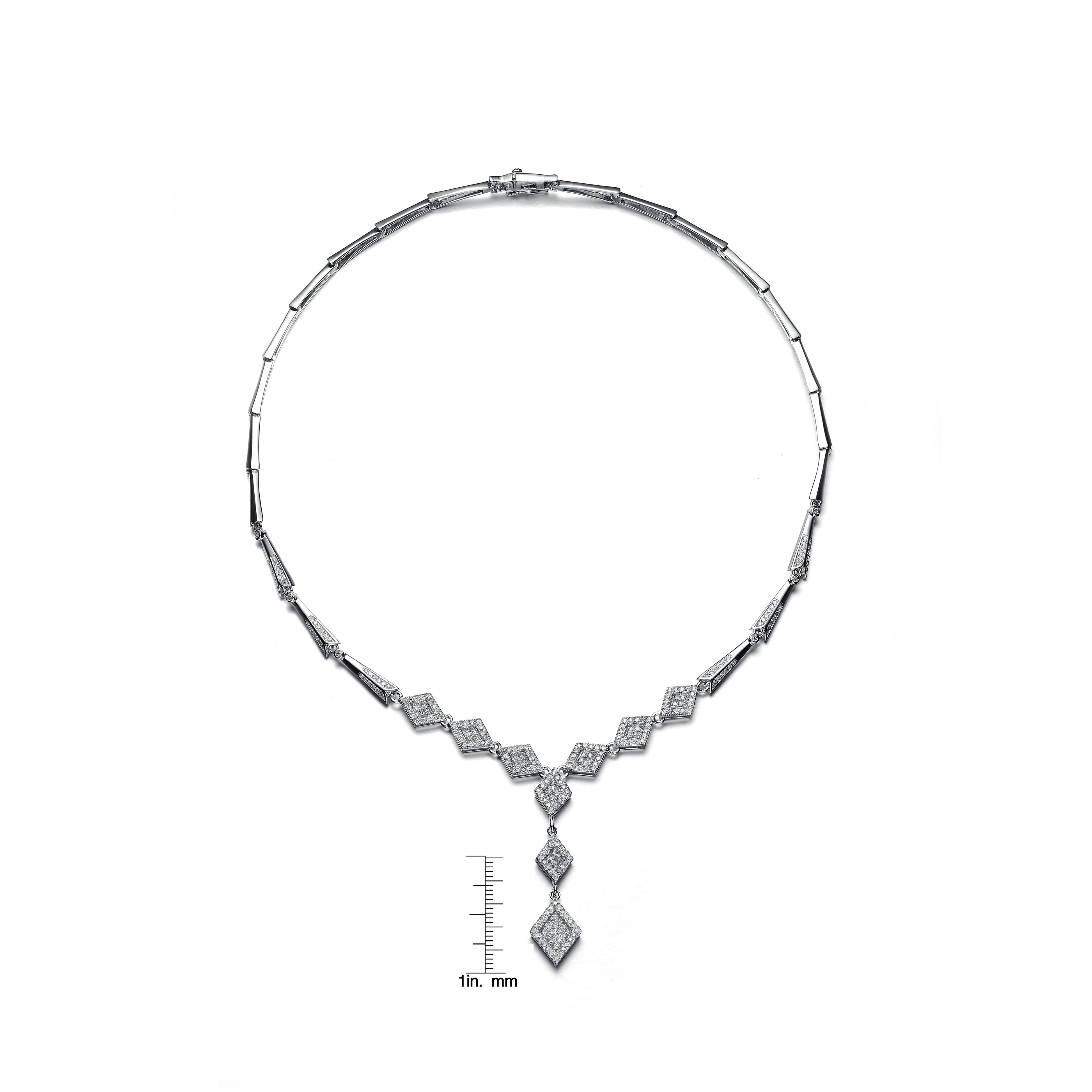This nice necklace features shapes decorated with white round-cut cubic zirconia stones. Crafted of .925 sterling silver, this wonderful necklace secures with a box clasp