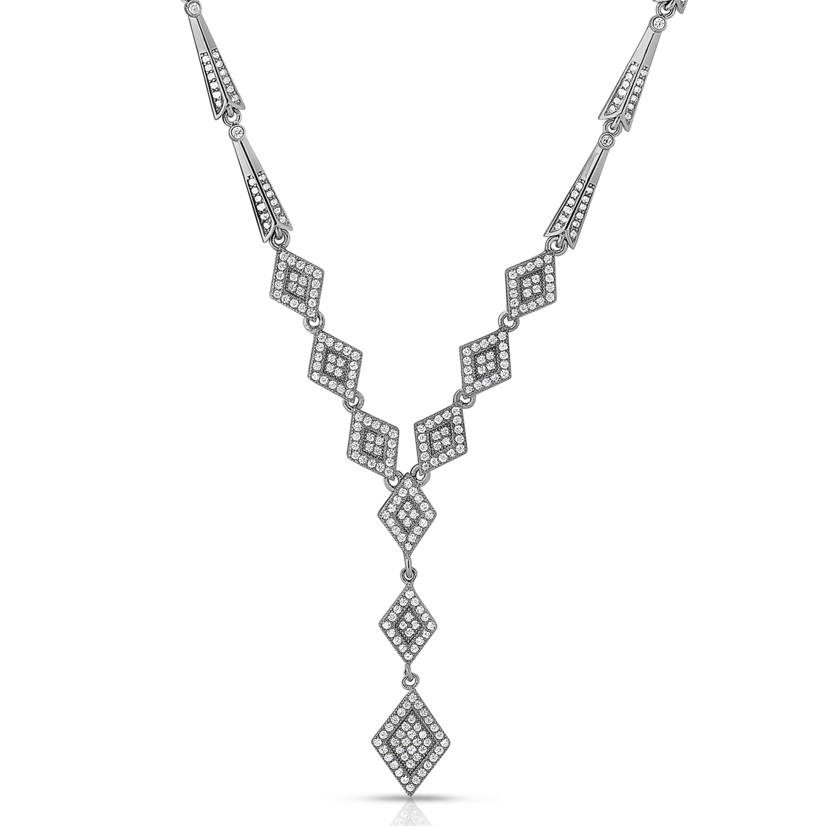 CZ SS Rhodium Plated Micro Pave Shape Necklace
