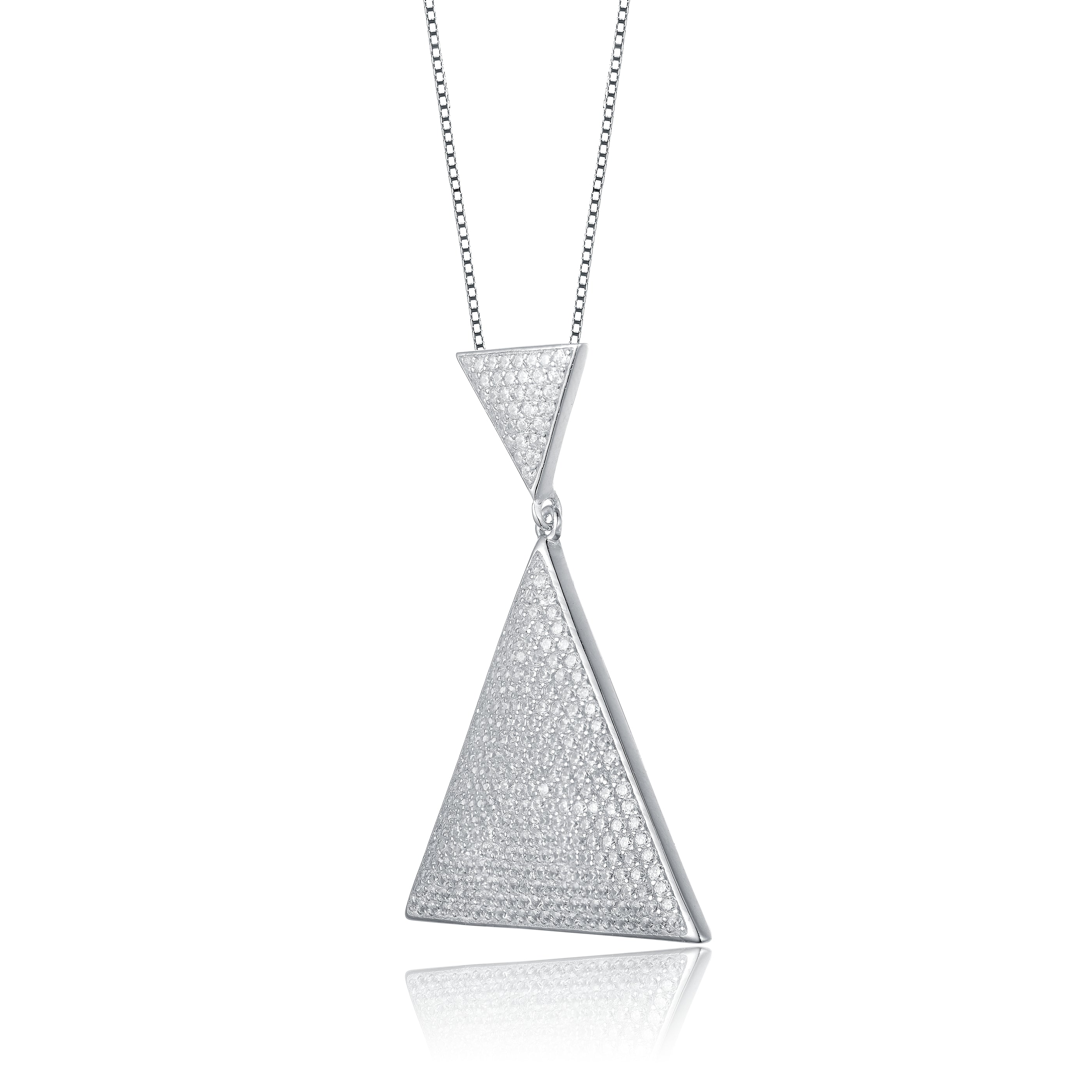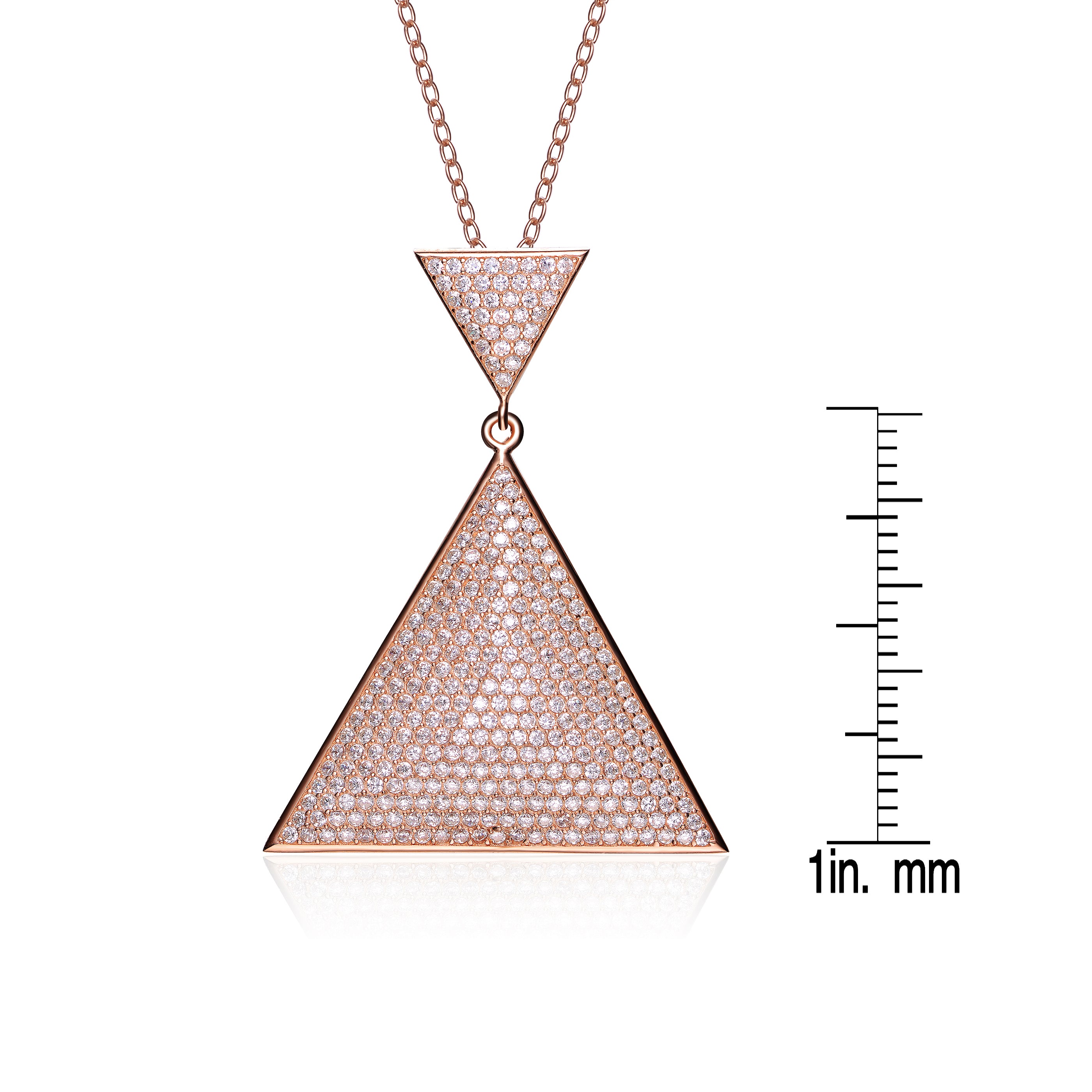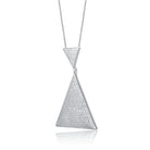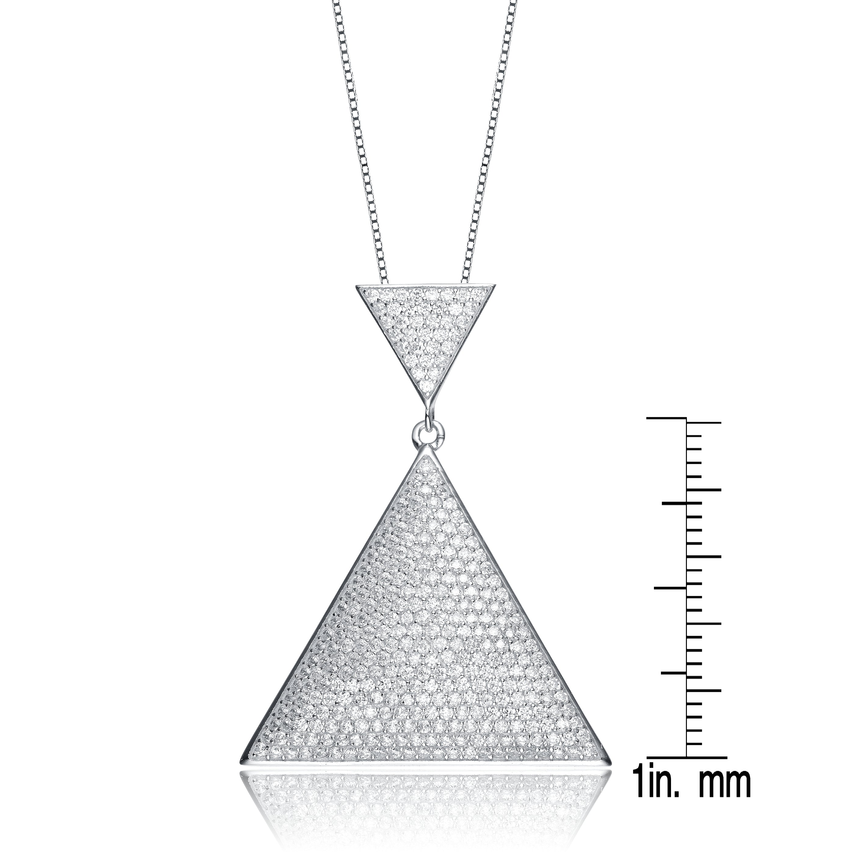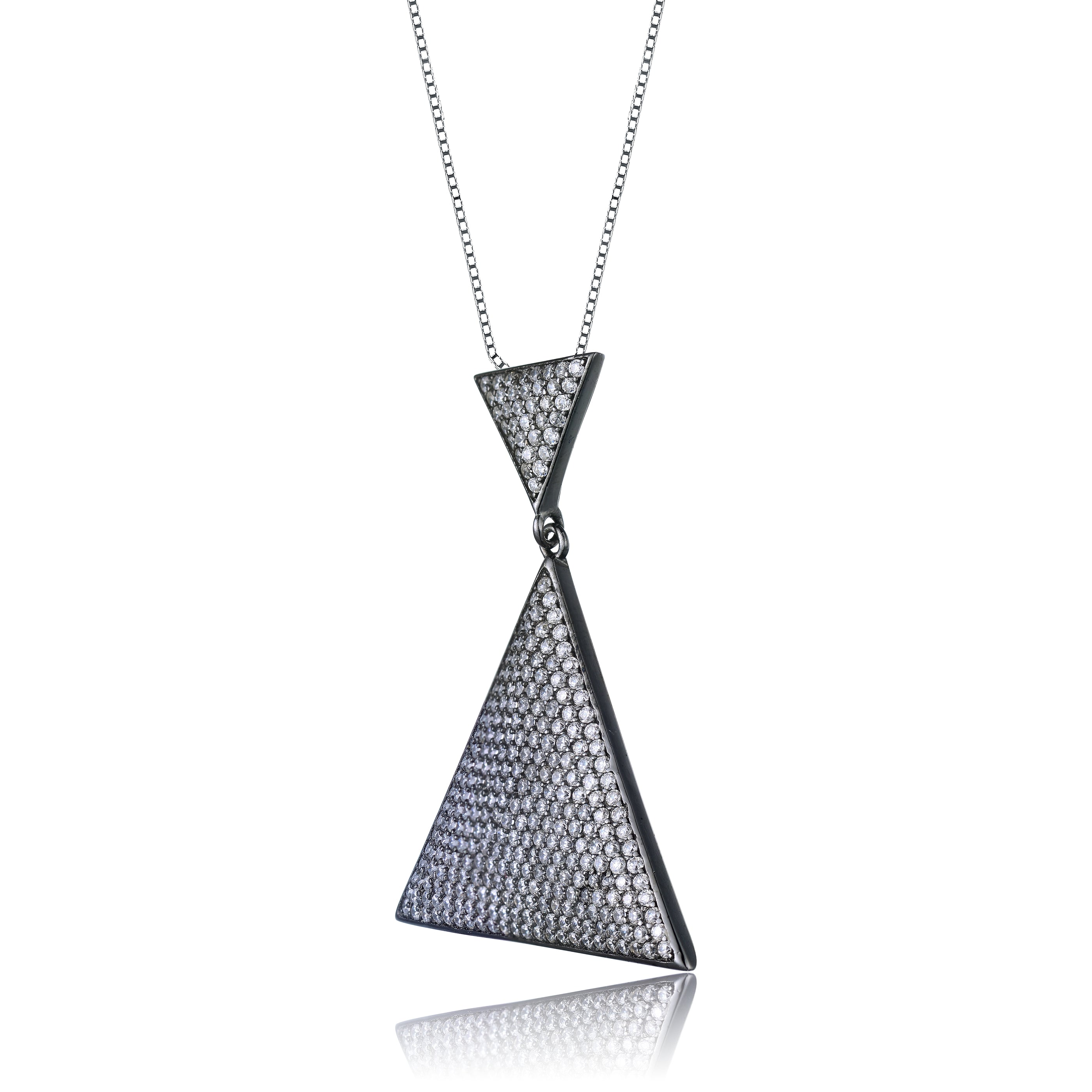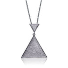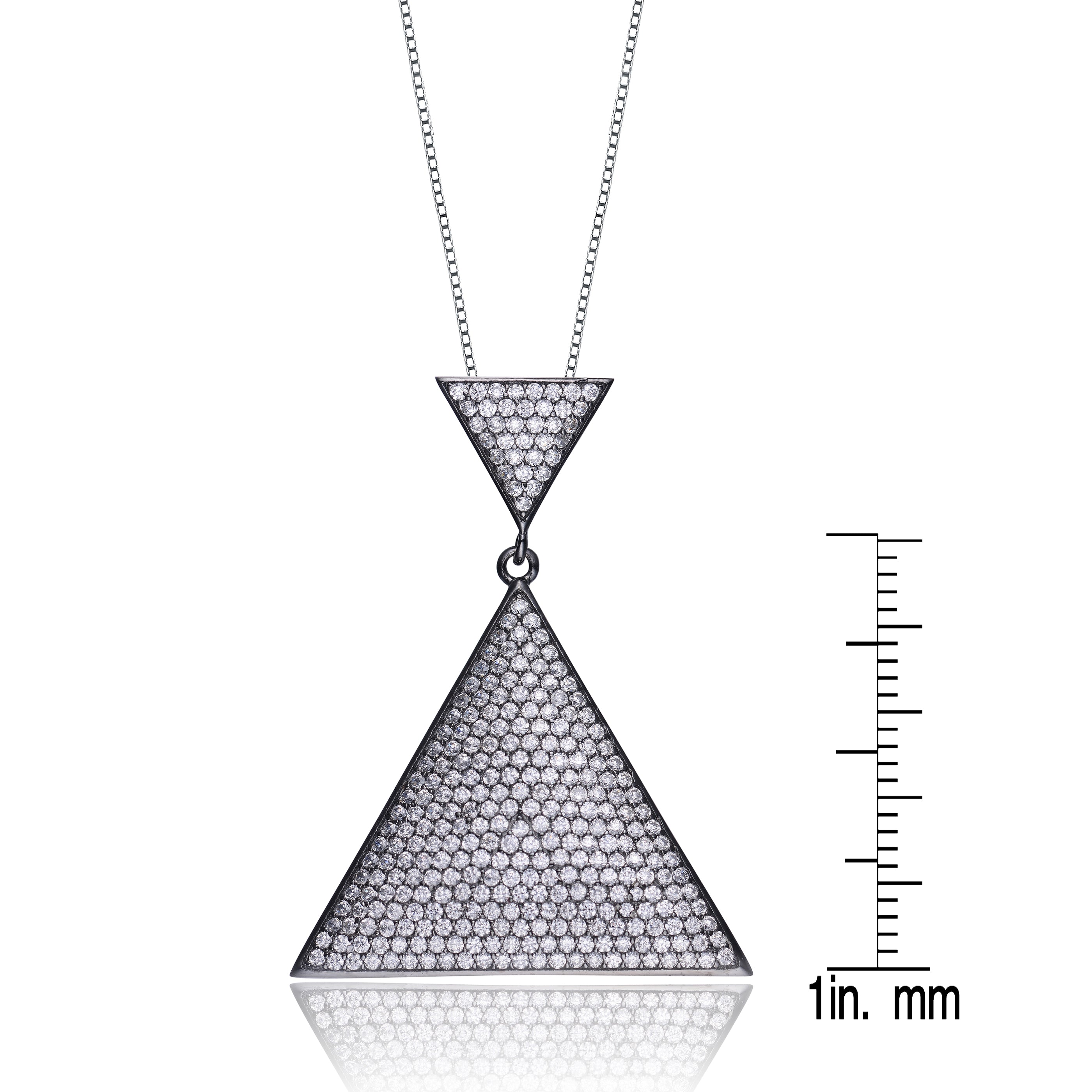 This triangle shape pendant features shimmering round-cut cubic zirconia stones in pave settings. Crafted of .925 sterling silver, with black plating, the necklace secures with a spring ring clasp.