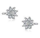 Sectioned into eighths, these miniature star shaped studs are bedecked in finespun threads of cubic outline. Held into place by sterling silver wedges are mid sized cubic stones and a center staged larger version of the mezmerizing cubic stone.