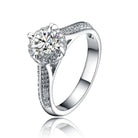 This stunning ring feaures dazzling white round-cut cubic zirconia stones. The ring is crafted of .925 sterling silver.