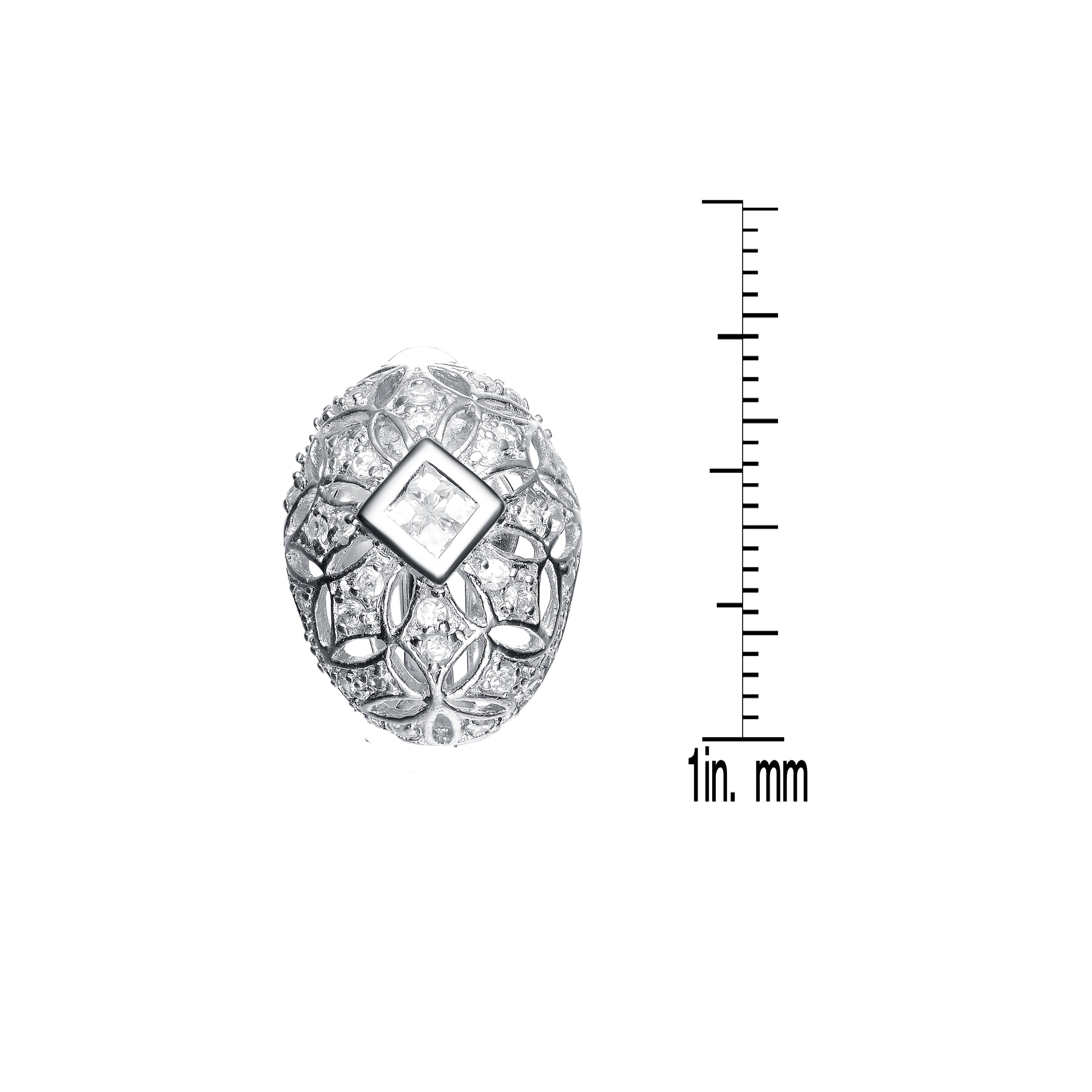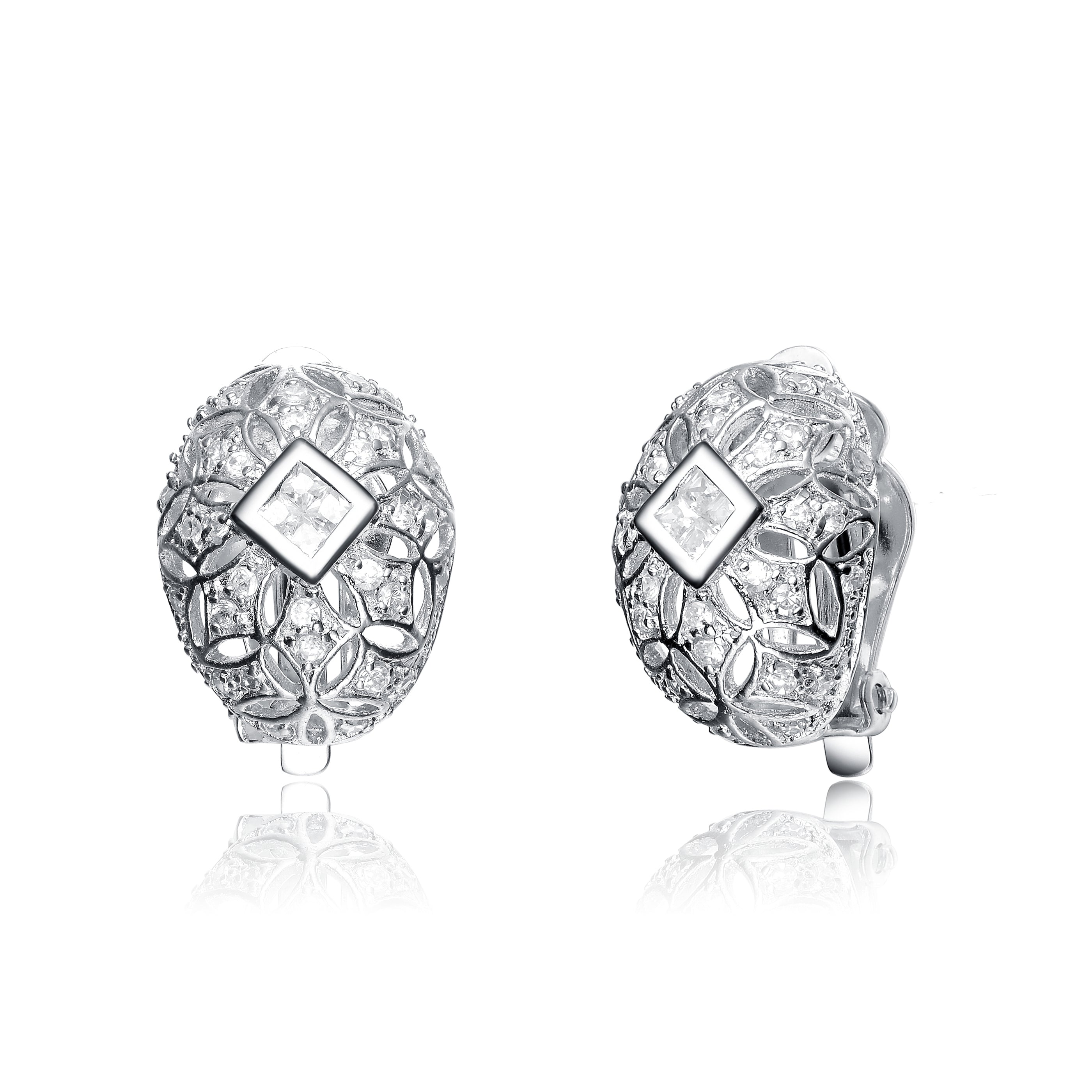 These sterling silver earrings are reminiscent of the Faberge Egg. Stunning clear cubic zirconia stones are arranged in an oval shape.