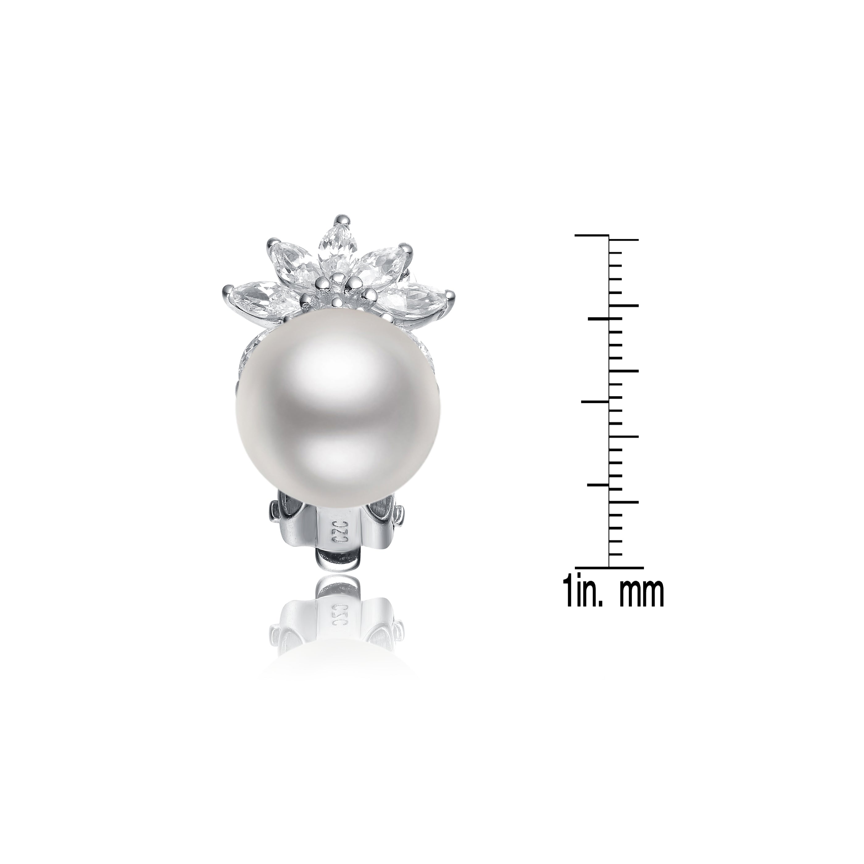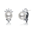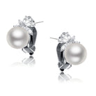 CZ Sterling Silver Rhodium Plated Pearl Earrings