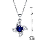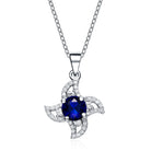 Cubcic Zirconia Sterling Silver Rhodium Plated Sapphire Flower Designed Pendant.