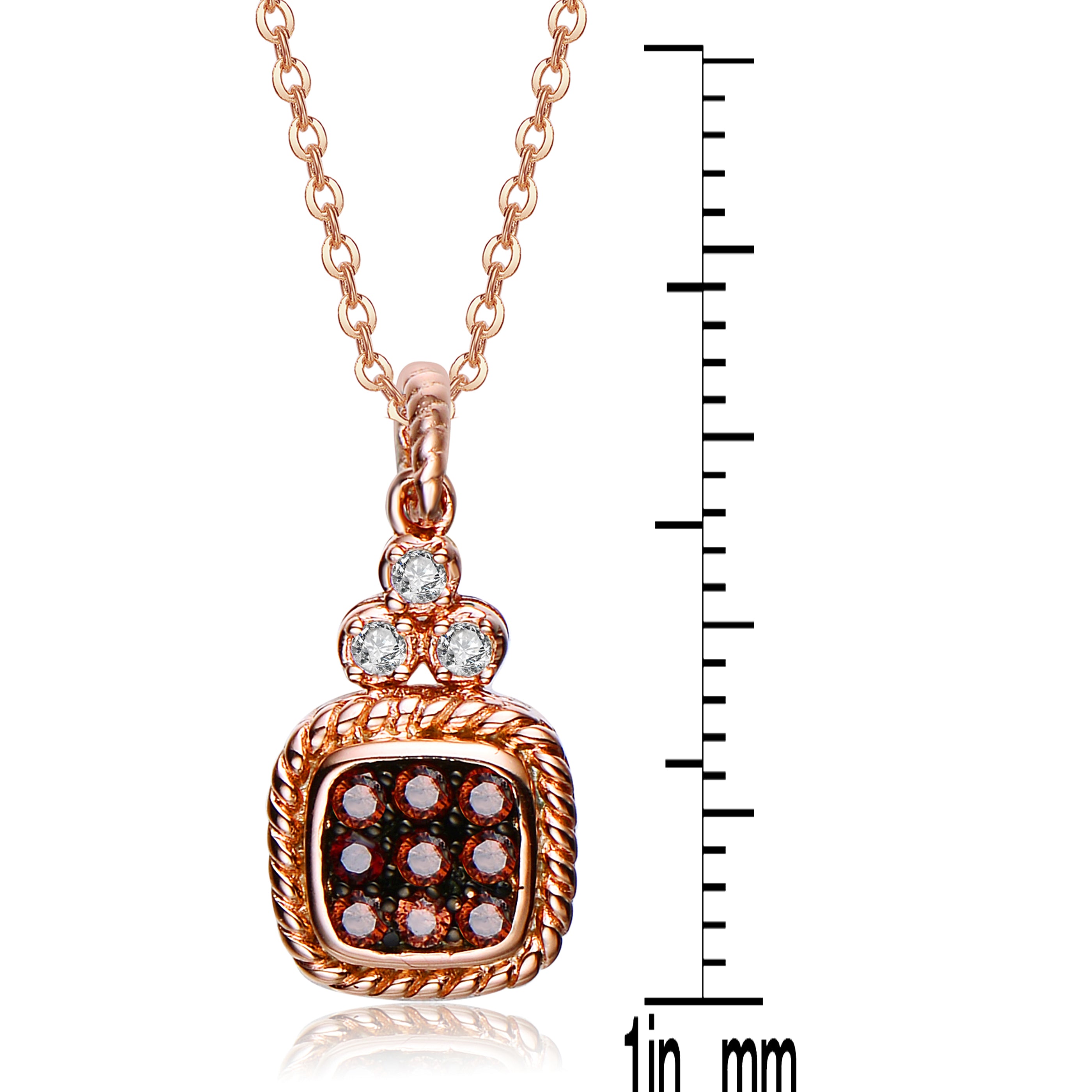 This dainty necklace features dark champagne and white round-cut cubic zirconia stones. Crafted of .925 sterling silver, with rose plating, the necklace secures with a spring ring clasp.