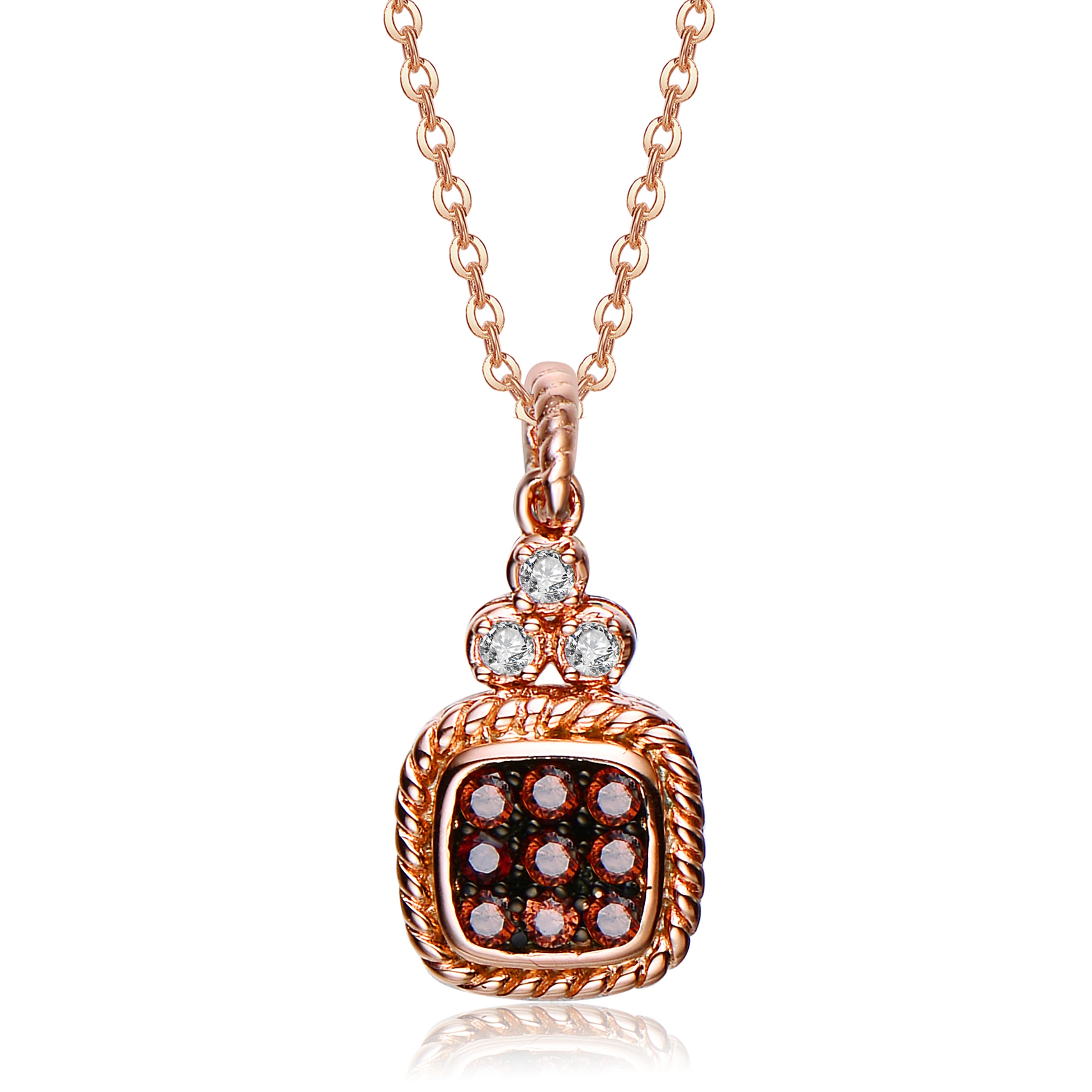 CZ Sterling Silver Rose Plated Coffee Pendant