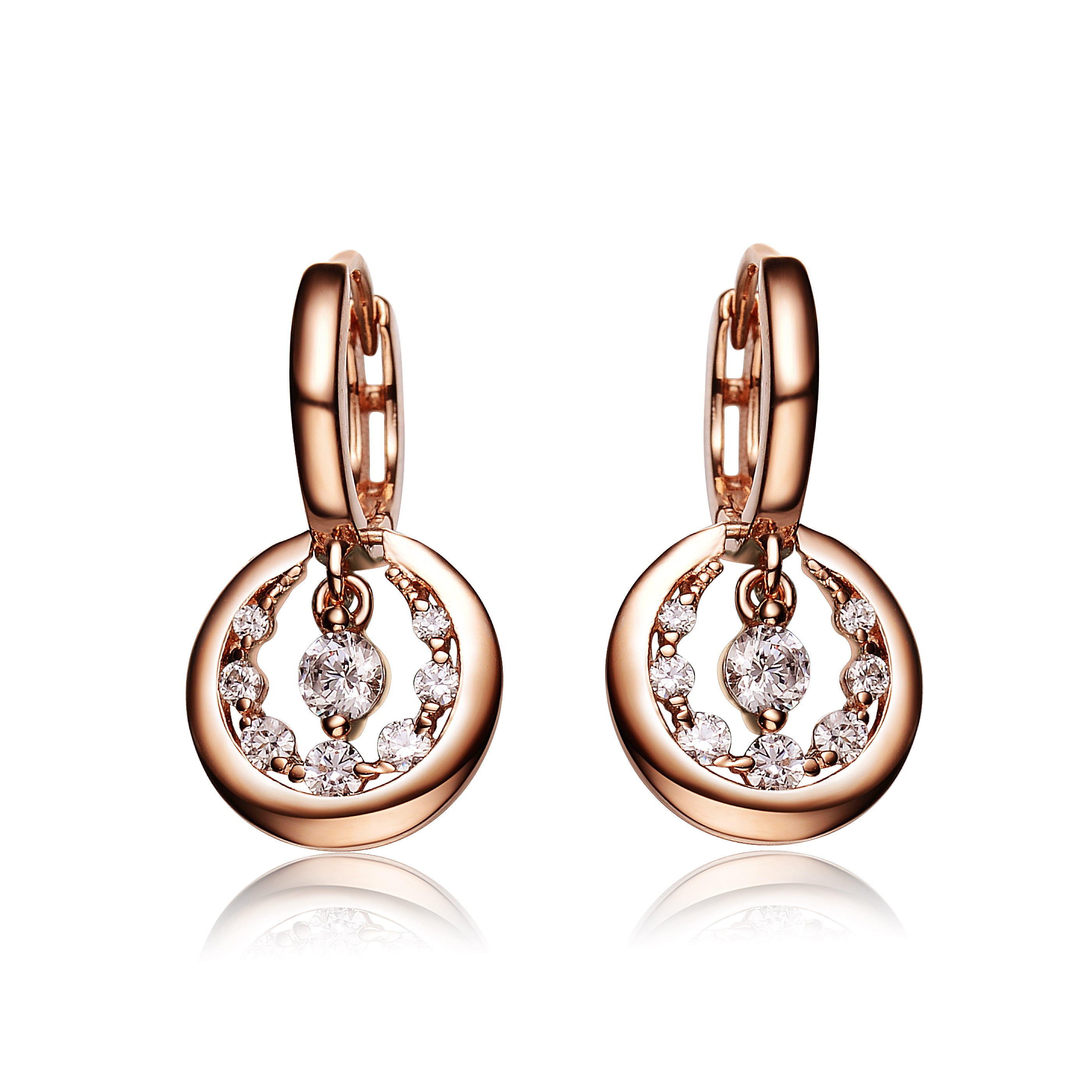 Stylish Rose Plated earings. These unique Sterling Silver Earing feauture round shape with center Cubic Zirconia and smaller Cubic Zirconia .