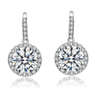 These classic round shape dangling earrings feature dazzling cubic zirconia stones. Crafted of .925 sterling silver the earrings secure with euro clasps.