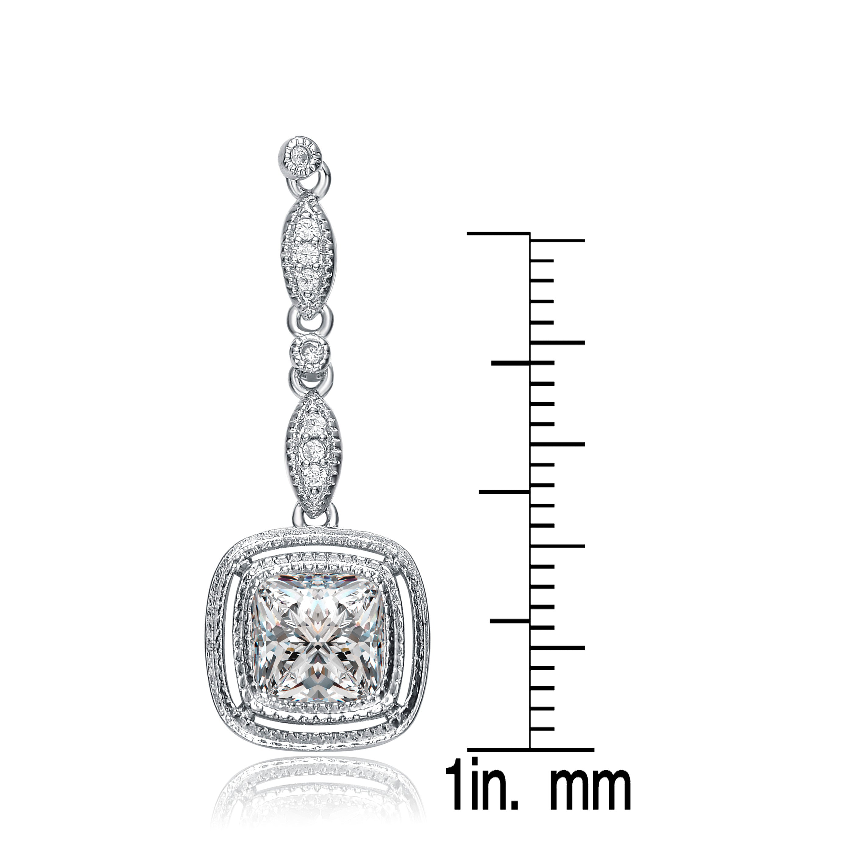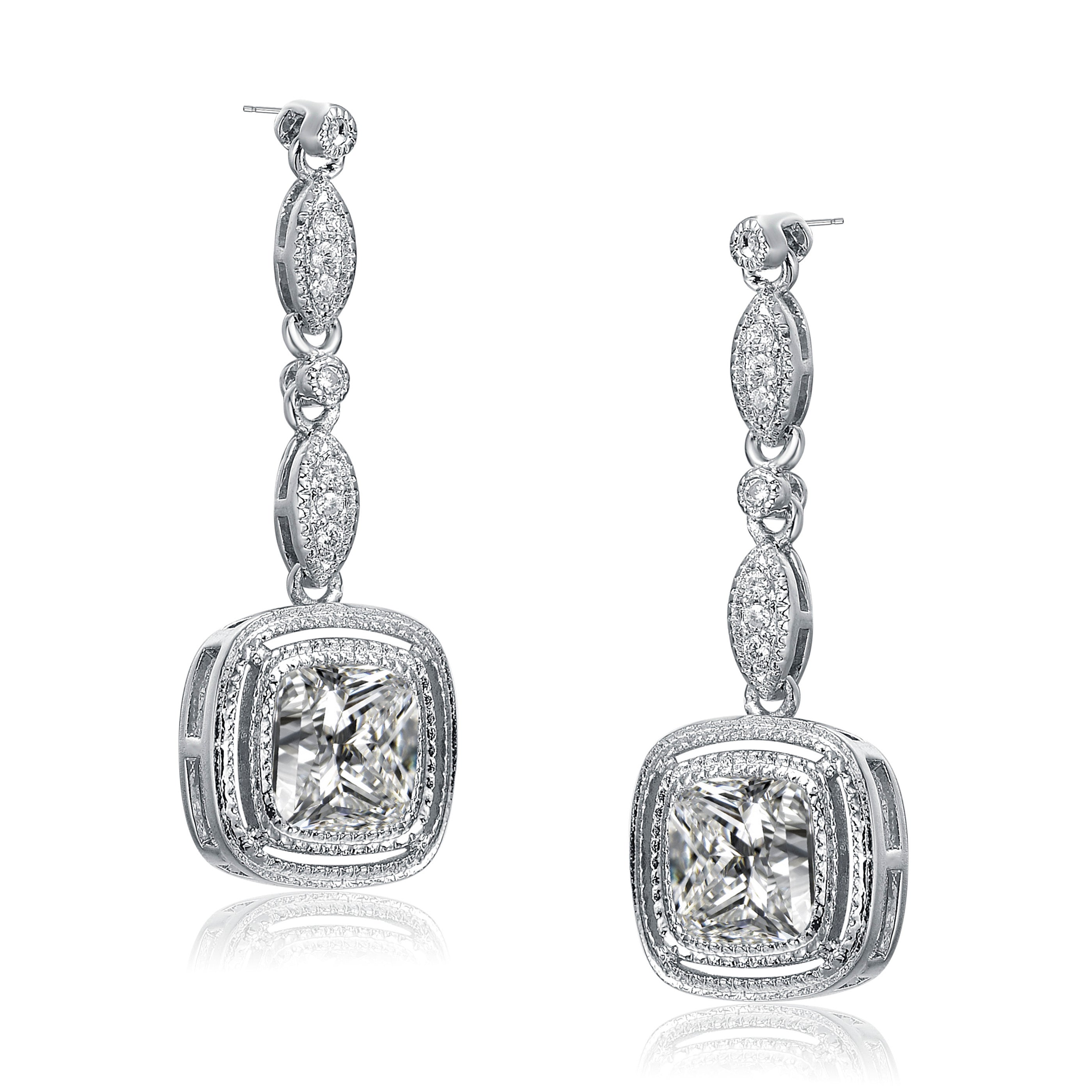 CZ Sterling Silver Square Drop Earrings