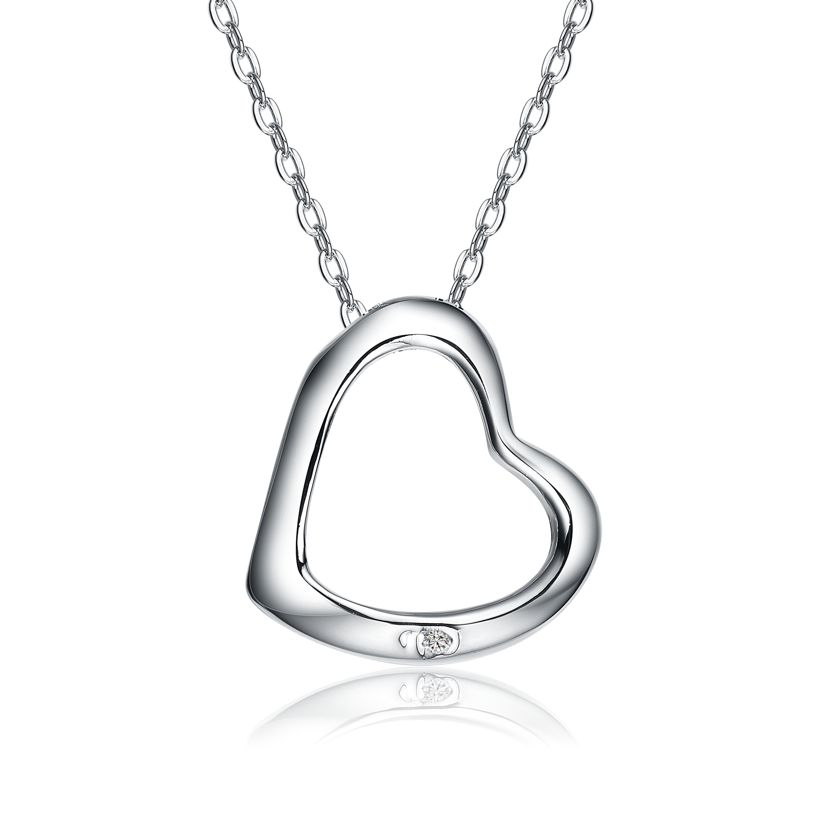 Lovely diamond heart necklace. This shiny heart pendant sparkles with a round brilliant cut solitaire diamond. This penant necklace secures with a spring ring.