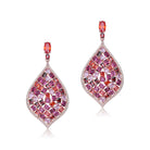 Elegant Sterling Silver with Rose Gold Plated Cubic Zirconia Drop Earrings. These dainty pear shaped drop earrings are decorated with ruby and clear oval and round-cut cubic zirconia stones, in the center of the metal frame surrounded by a trail of clear round cubic zirconia stones. Crafted of .925 sterling silver, with rose gold plating, these fantastic earrings secure with butterfly clasps.