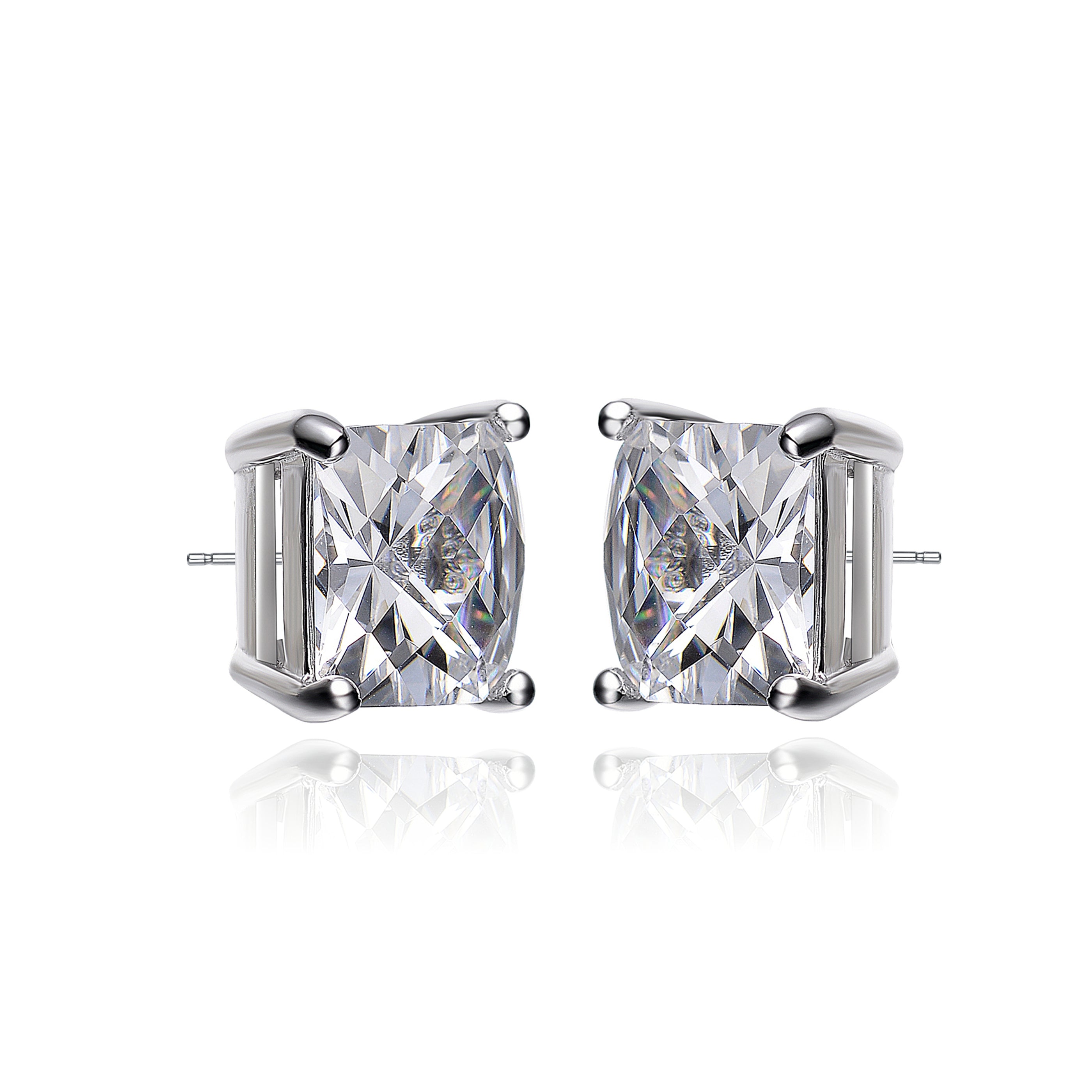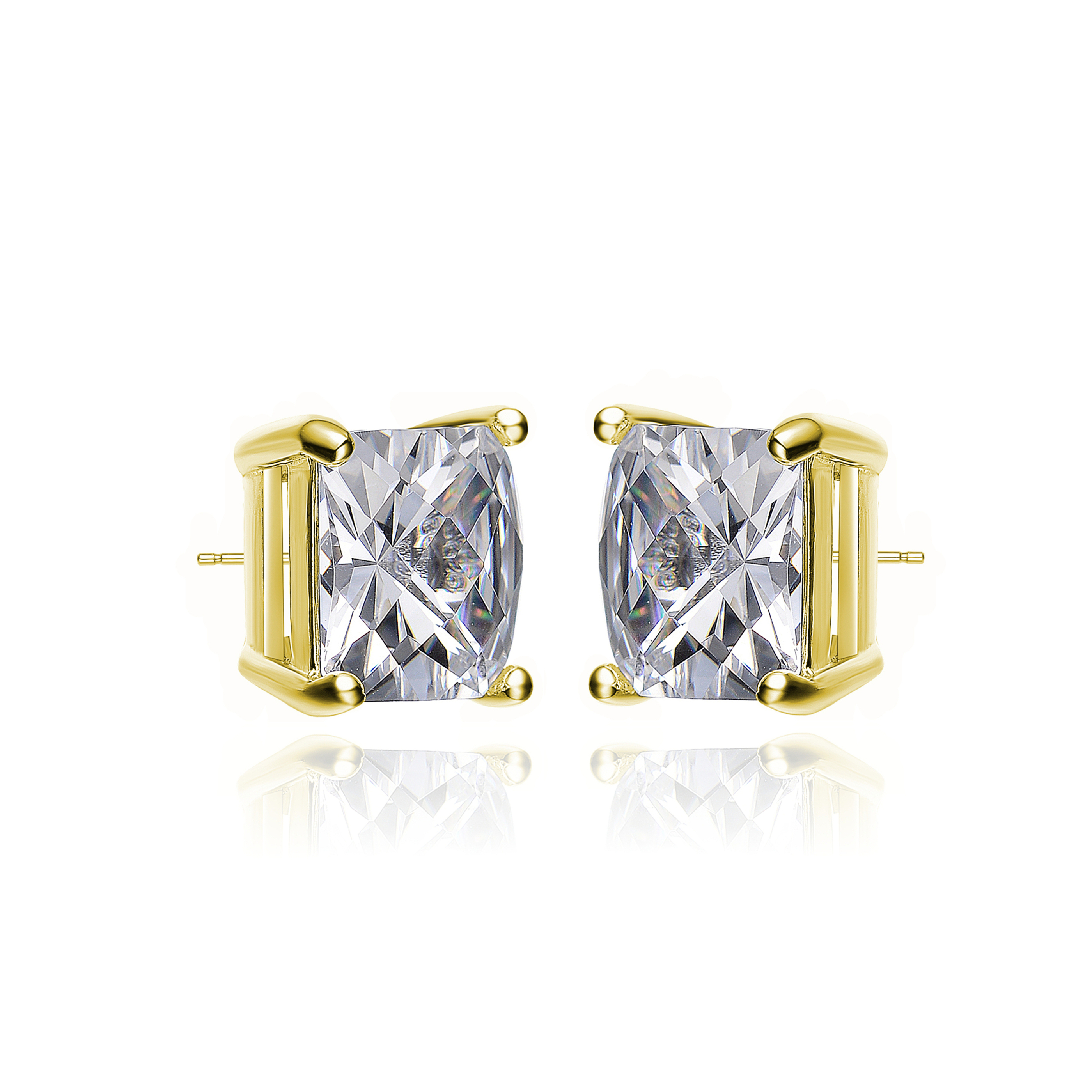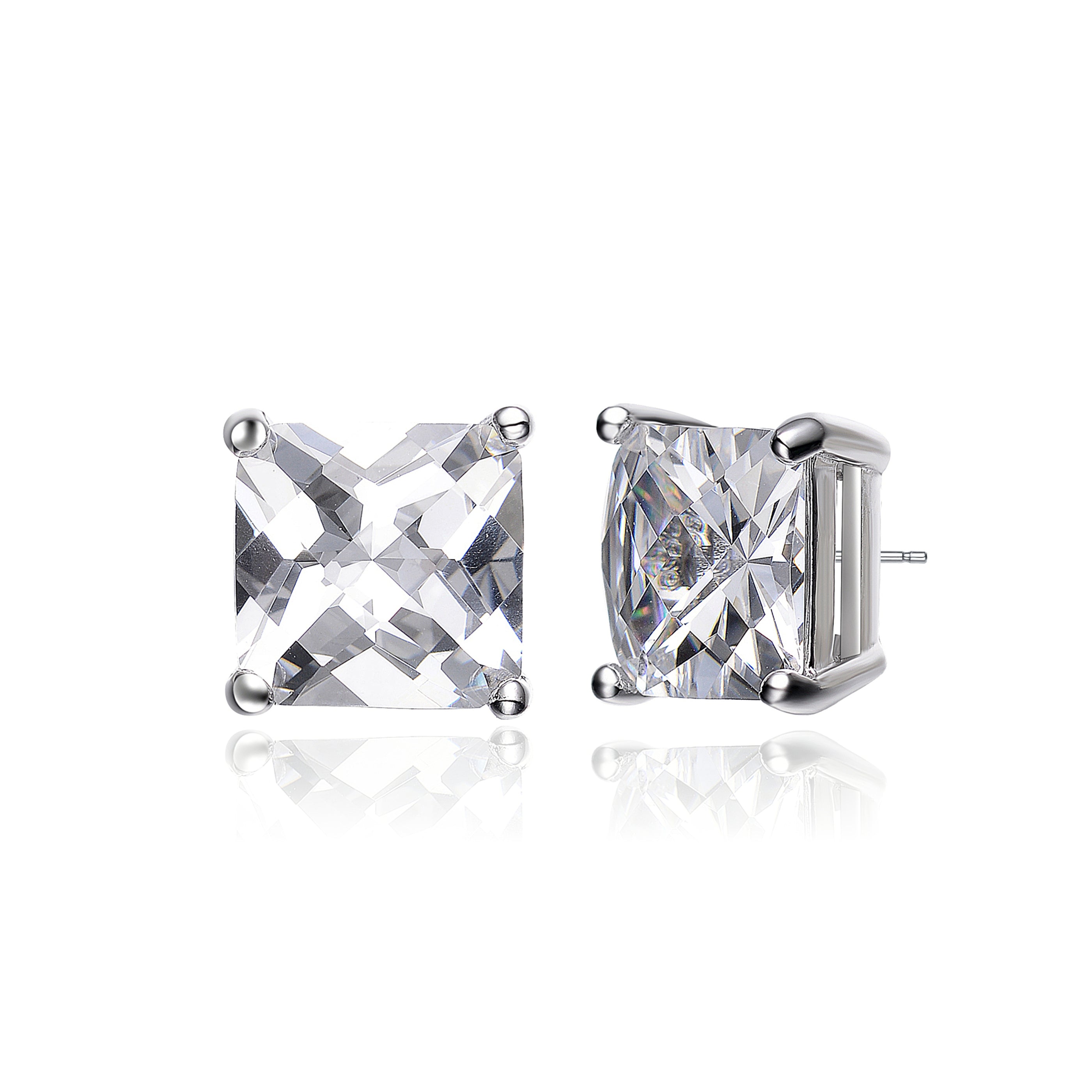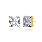 Elevate your style with these exquisite Sterling Silver White Gold Plated or 14k Yellow gold plated Stud Earrings. Sparkling clear Cubic Zirconia stones add a touch of elegance. The square shape exudes modern charm. Securely fasten them with the convenient butterfly clasp. A perfect blend of sophistication and grace.