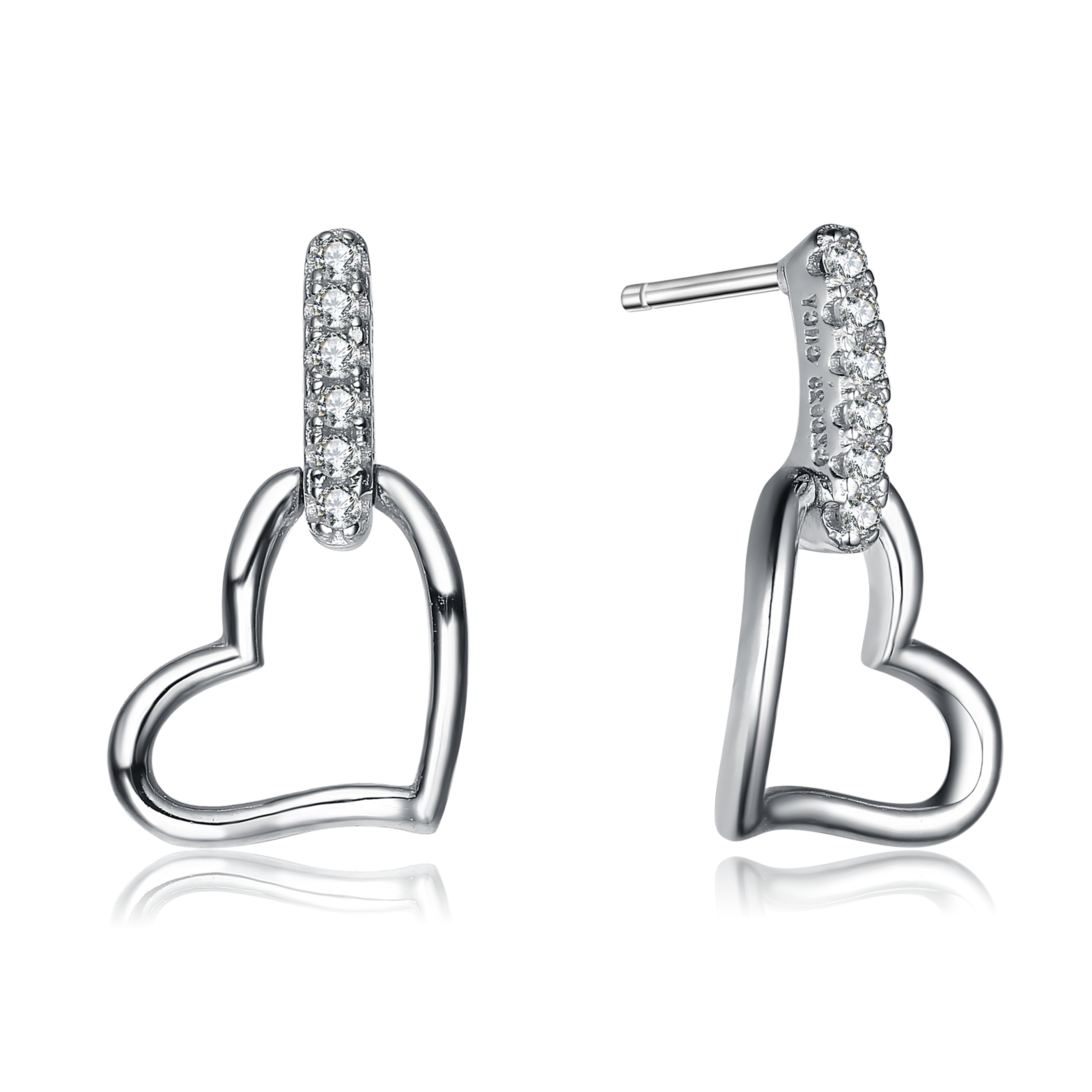 These romantic earrings create effortless sophistication with sterling silver hearts that dangle from a short strand of cubic zirconia stones. Perfect for a day or nighttime look.