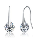 Stylish solitaire drop earrings. Add these pretty dangle earrings to your casual, night, formal, or semi-formal look, making them the perfect detail for your style. A sparkling round brilliant cut solitaire stone set in the middle of each shiny French hook gives them a classic yet glamorous appeal, allowing them to easily slip on the ears. Gift them as a birthday or holiday gift. Choose from white, gold, mint tourmaline, and ruby red color options.