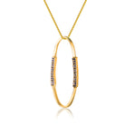 An open gold overlay circle with accented cubic zirconia stones is the focal point of this necklace. It’s great for a chic look around the office.