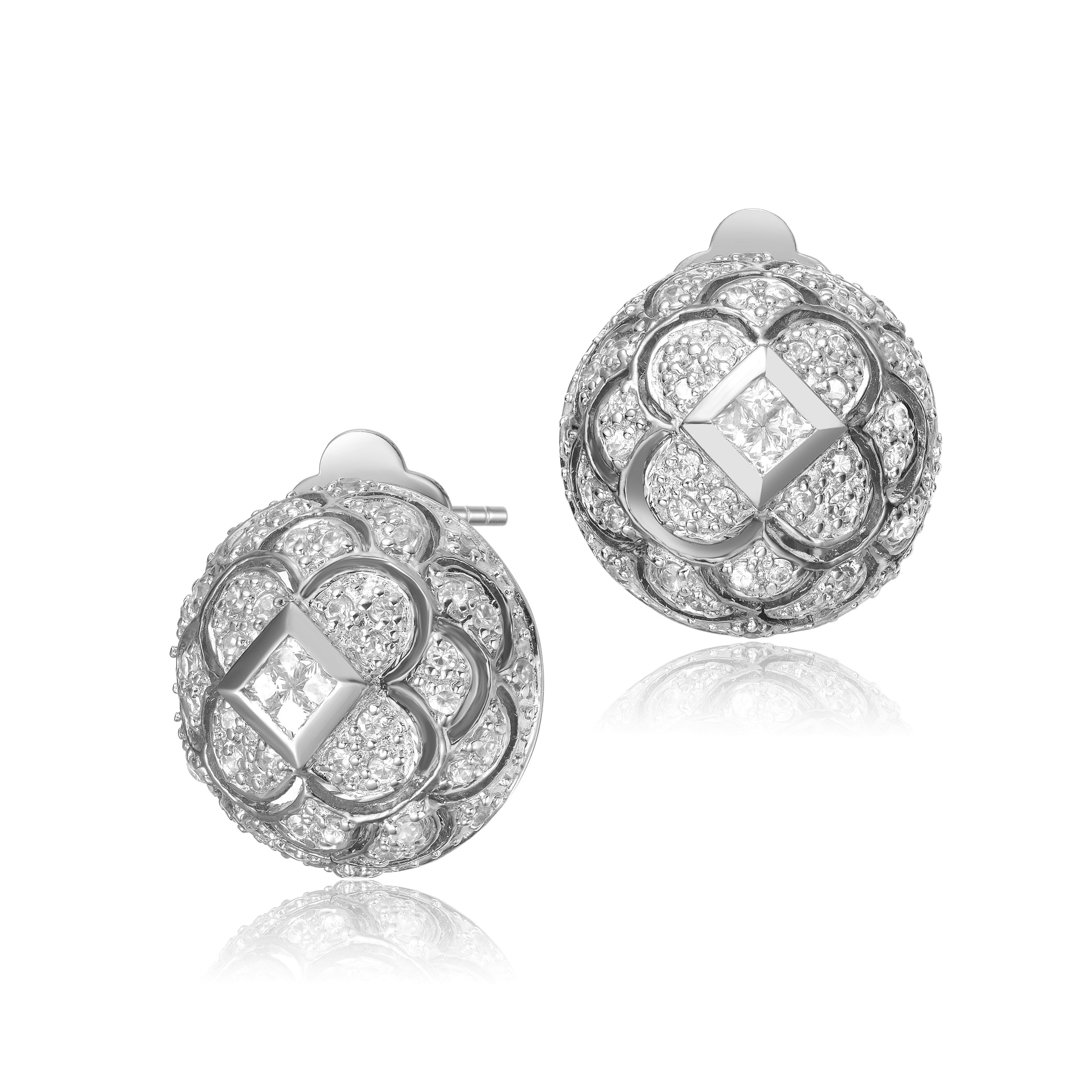 Add a touch of sophistication to your style with these sterling silver stud earrings. Featuring an intricate floral design, these earrings are encrusted with dazzling cubic zirconia that radiate brilliance from every angle. The center geometric detail adds a modern twist, making these earrings perfect for elevating both casual and formal looks.