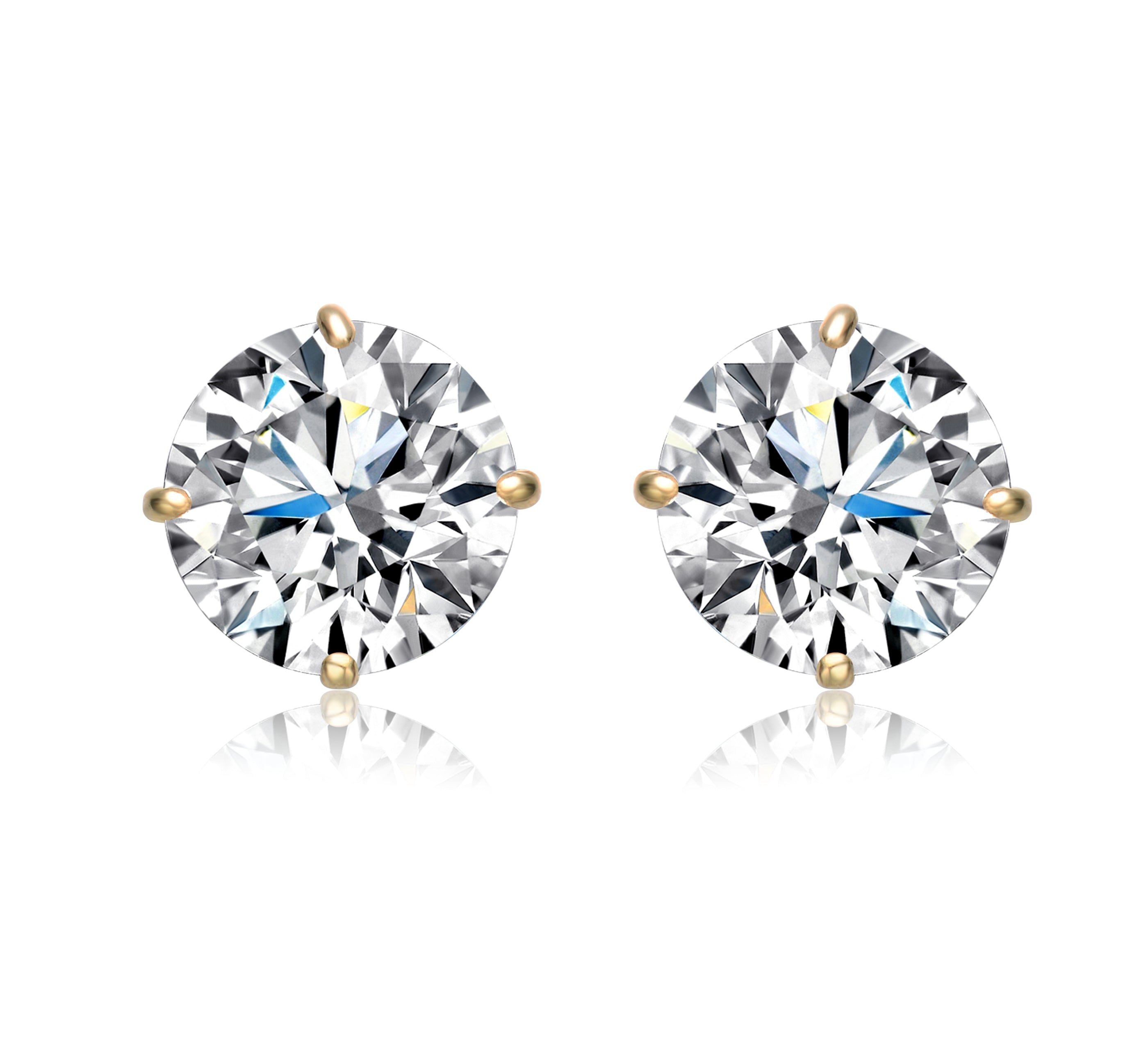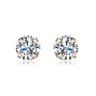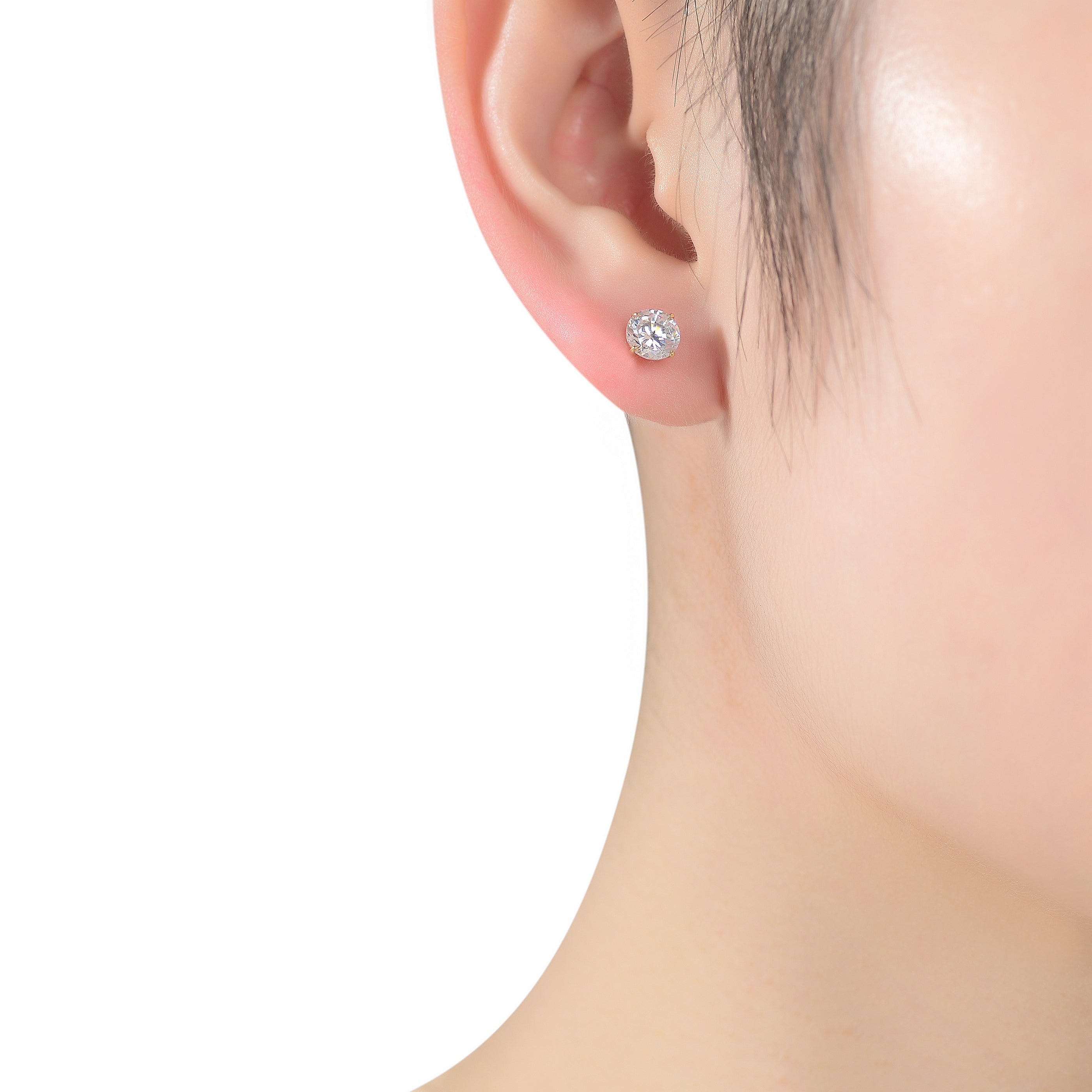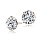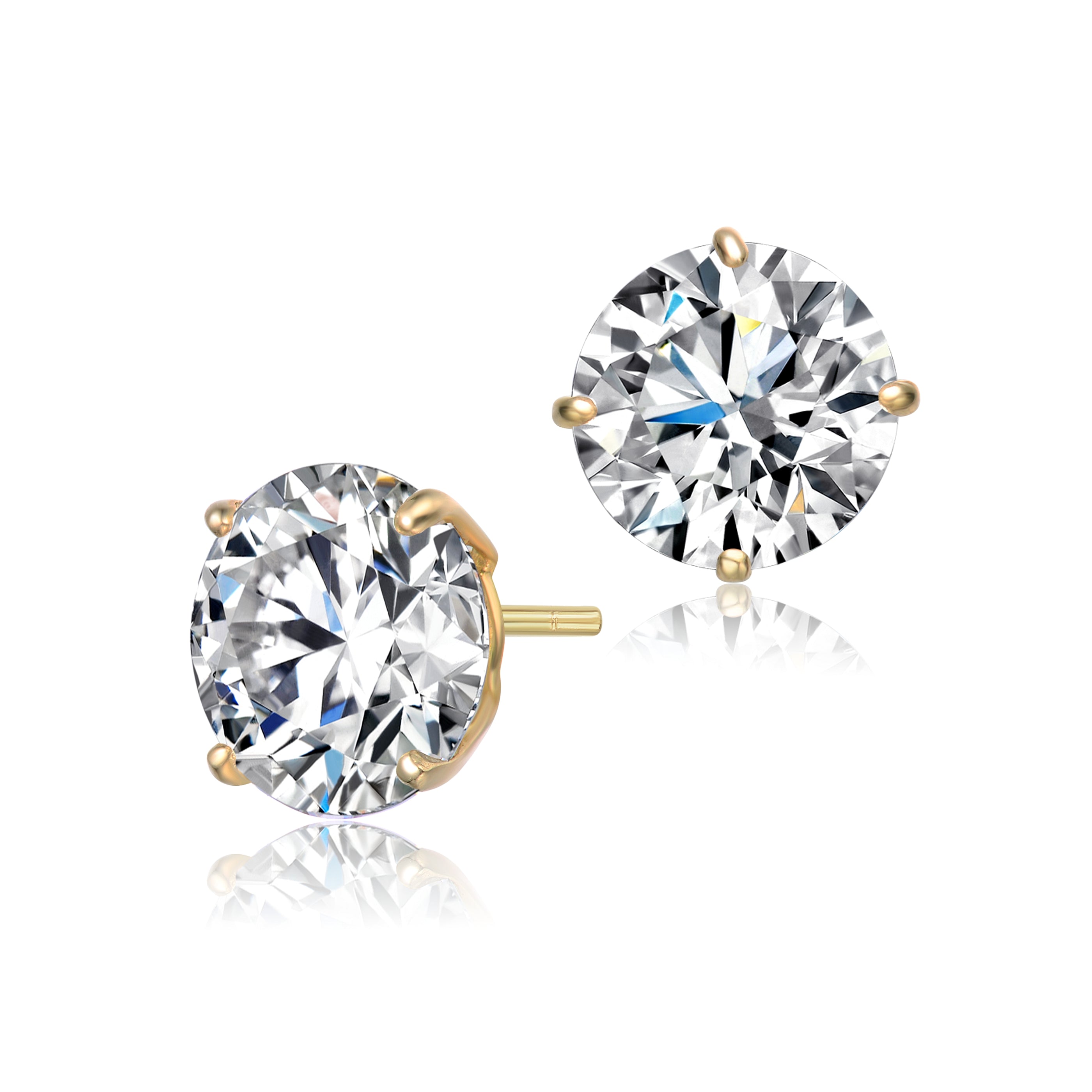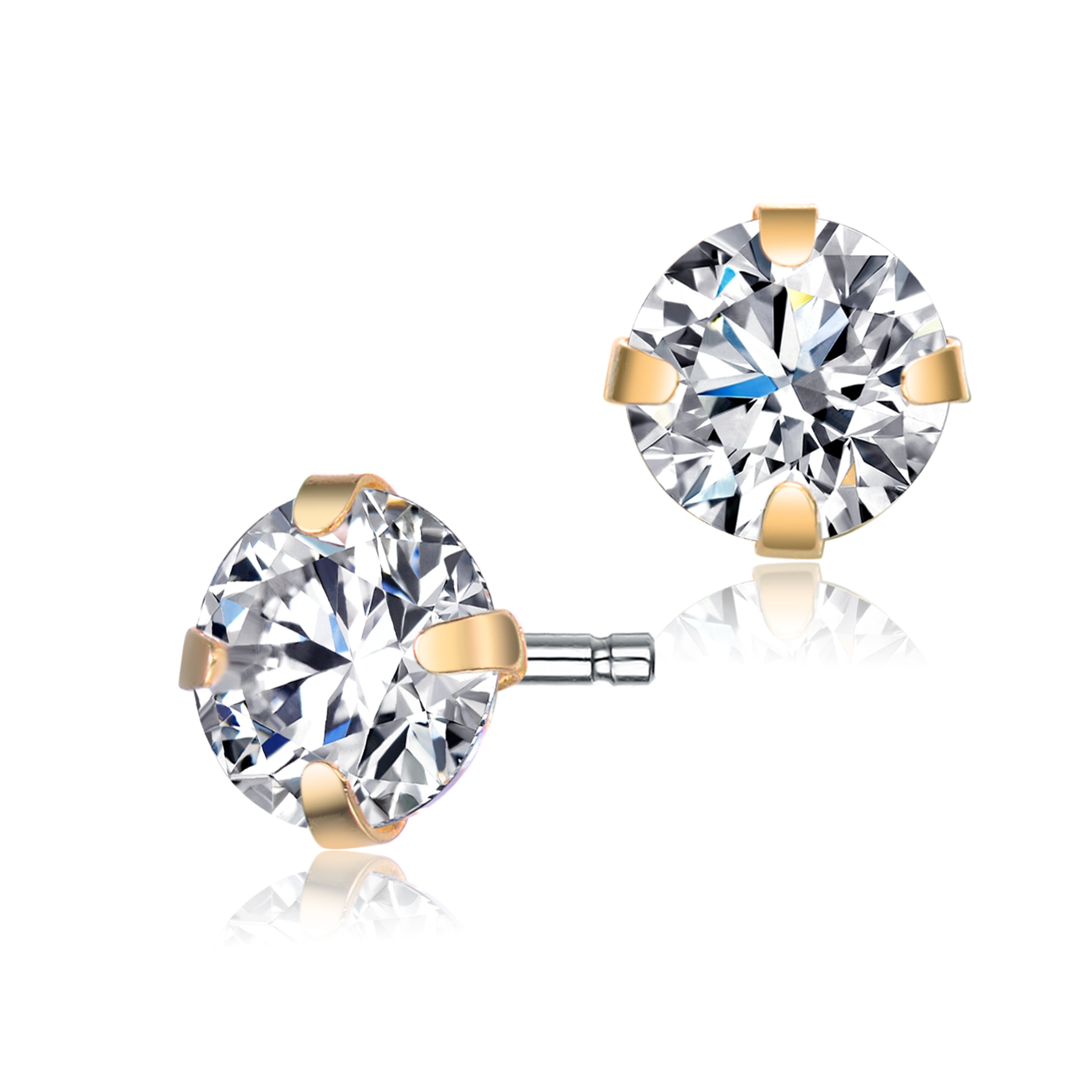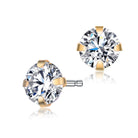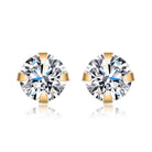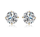 These exquisite stud earrings feature a pair of brilliantly faceted cubic zirconia stones, meticulously crafted to capture and reflect light, mimicking the fire and brilliance of diamonds. Each stone is securely nestled in a classic four-prong setting made from high-quality sterling silver with a lustrous gold plating, ensuring both durability and timeless style.