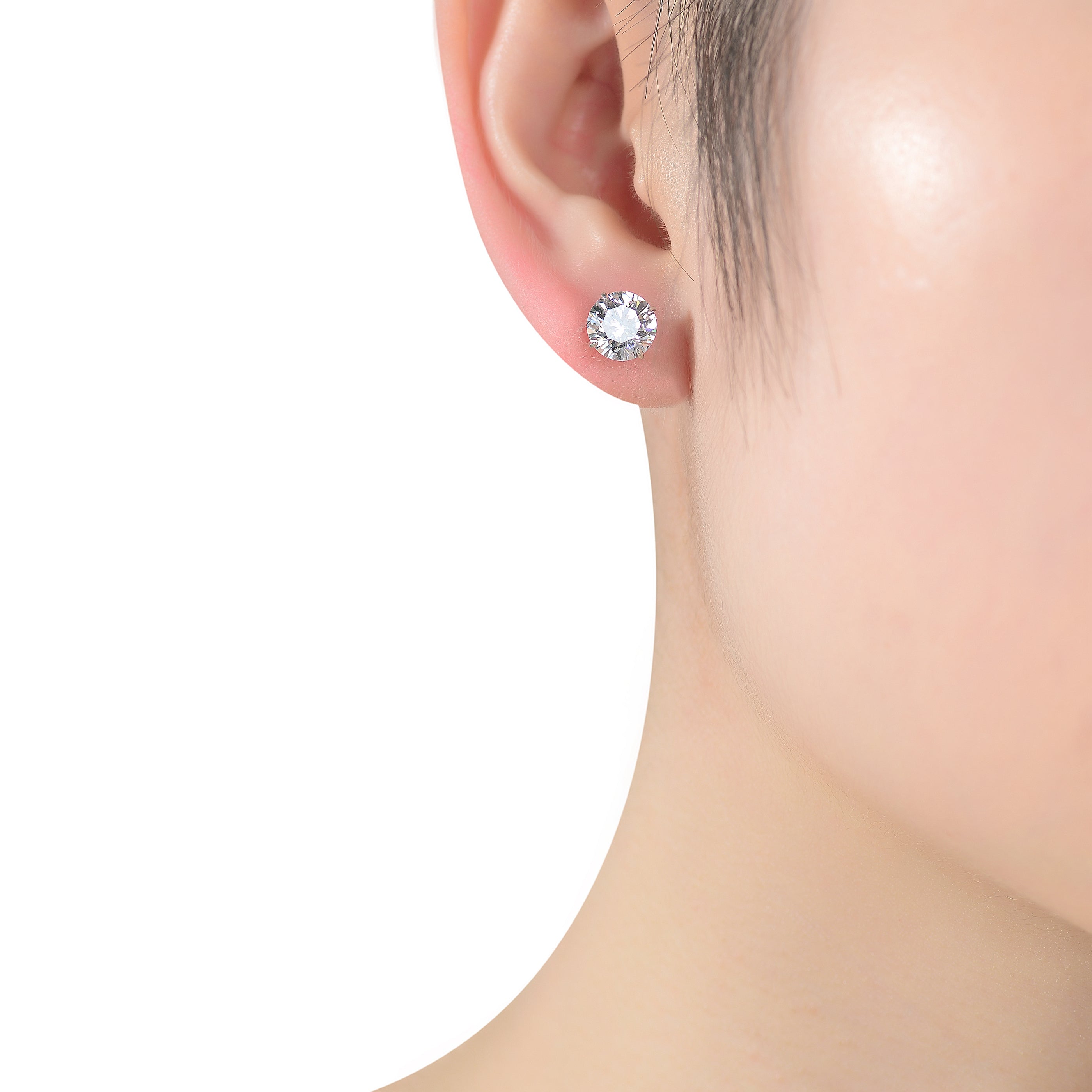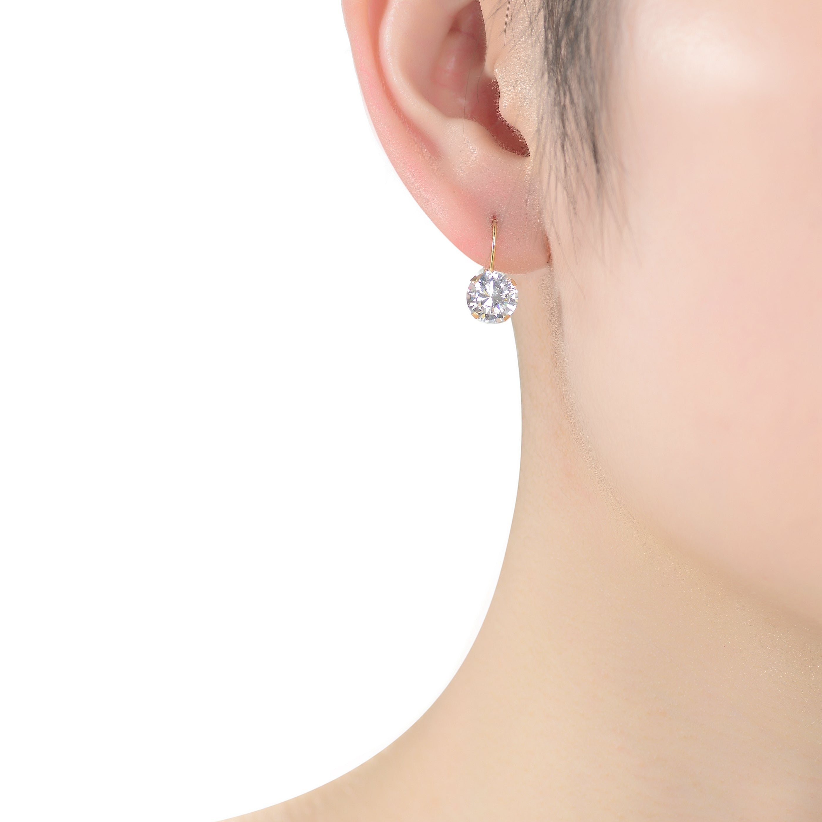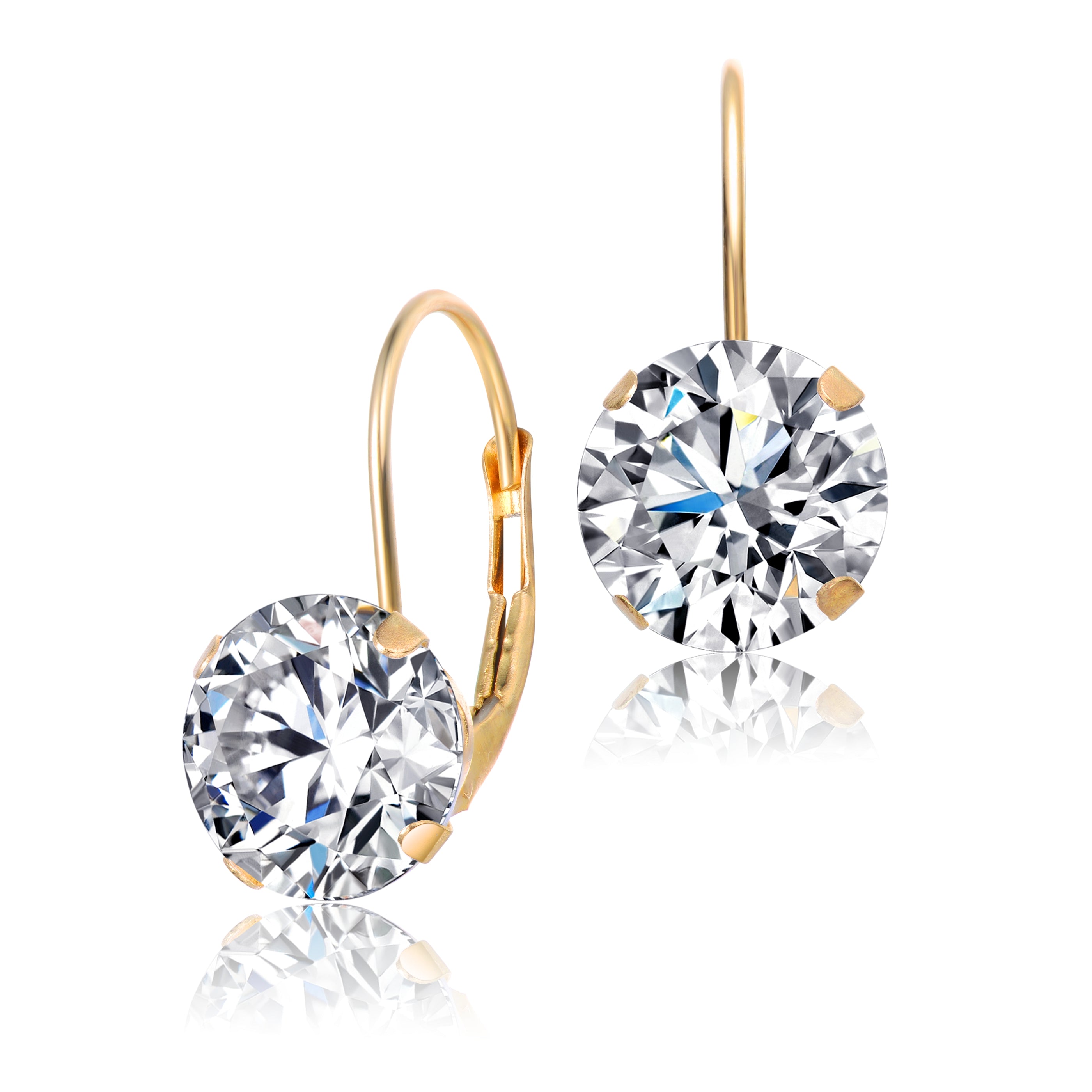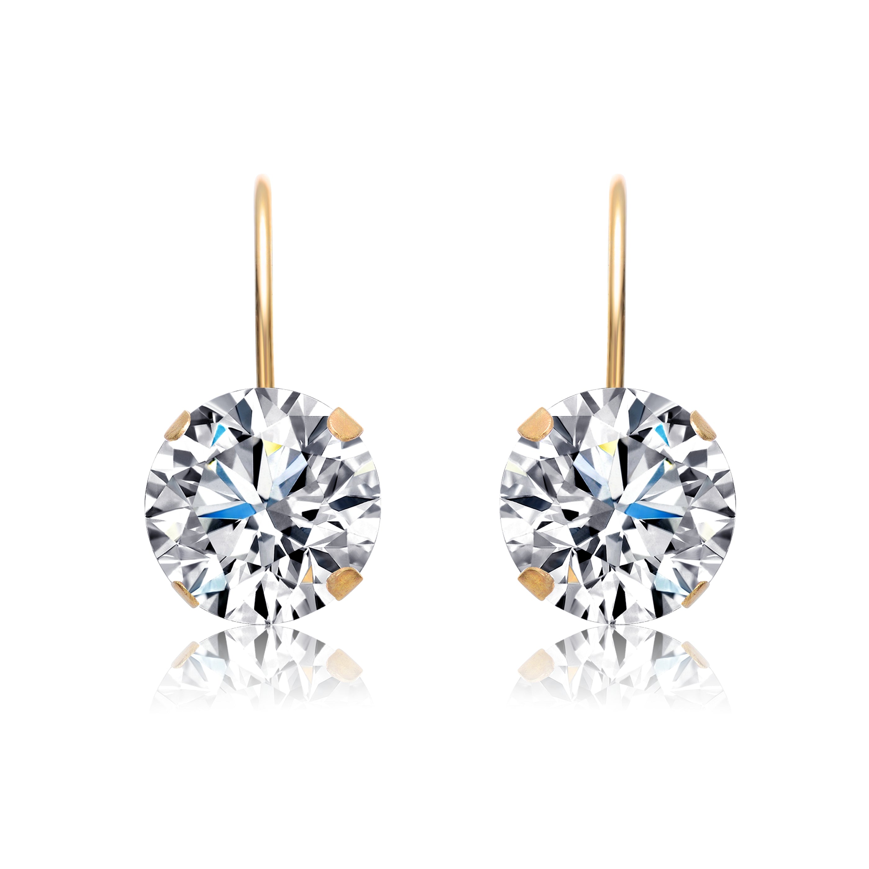 These exquisite stud earrings feature a pair of brilliantly faceted cubic zirconia stones, meticulously crafted to capture and reflect light, mimicking the fire and brilliance of diamonds. Each stone is securely nestled in a classic four-prong setting made from high-quality sterling silver with a lustrous gold plating, ensuring both durability and timeless style.