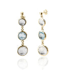 These exquisite earrings feature a trio of round-cut cubic zirconia stones, each encased in a gold-plated sterling silver bezel setting. The stones graduate in size from the top to the bottom, creating an elongated drop effect that is both graceful and eye-catching. The clear cubic zirconia crystals catch the light beautifully, mimicking the brilliance of diamonds, while the gold plating adds a touch of luxury without the high price tag. Perfect for formal events or adding sparkle to everyday wear, these earrings are a versatile addition to any jewelry collection.Β