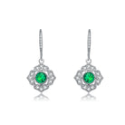 Elegant and enchanting, our Sterling Silver Flower Drop Earrings feature a cascade of vibrant colored cubic zirconia petals in emerald green or sapphire blue. Set in a gleaming white gold plated bezel, these earrings boast a secure leverback clasp for timeless beauty and effortless wear. Elevate your style with nature-inspired grace.