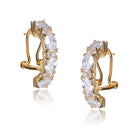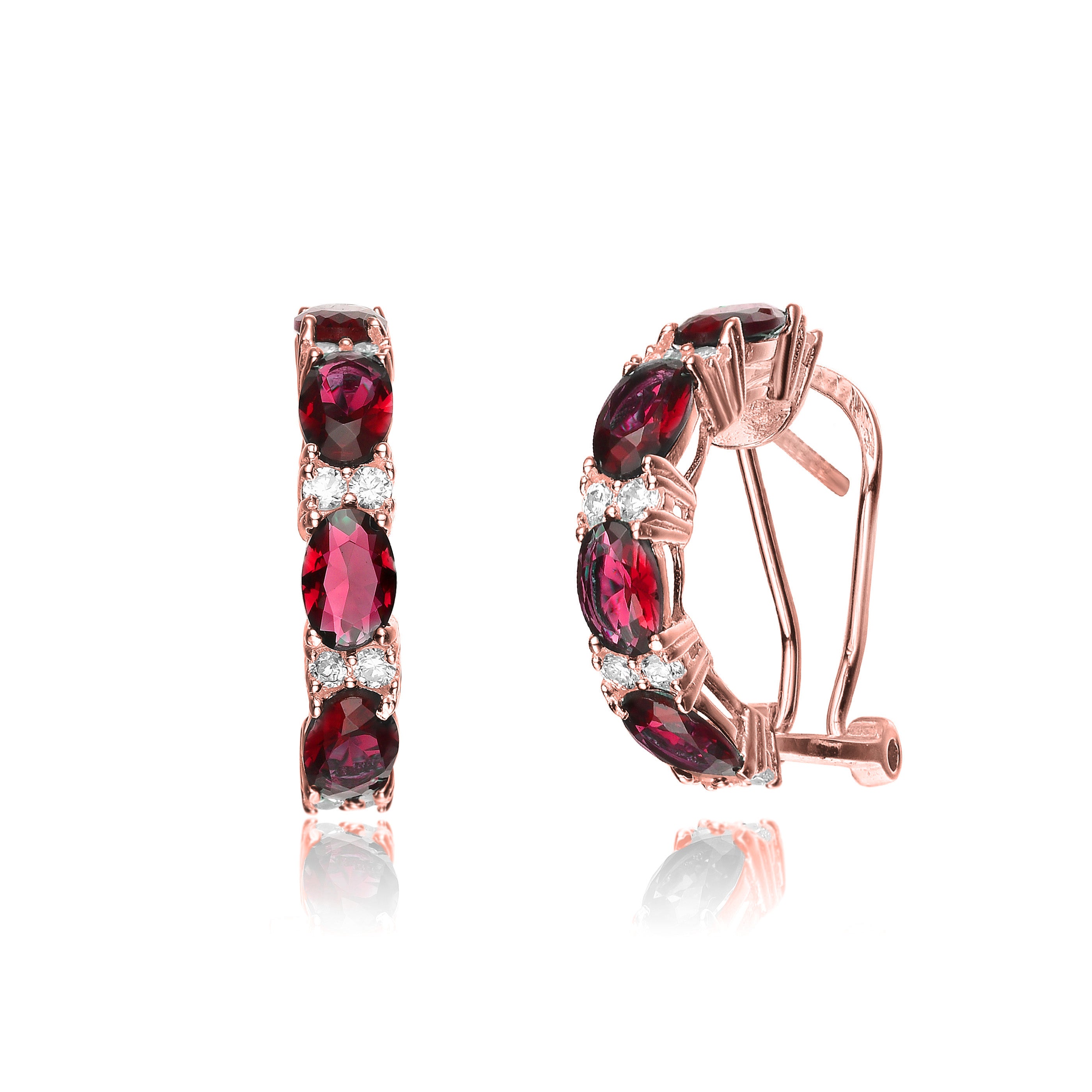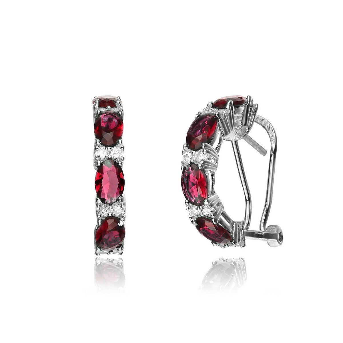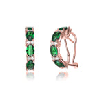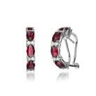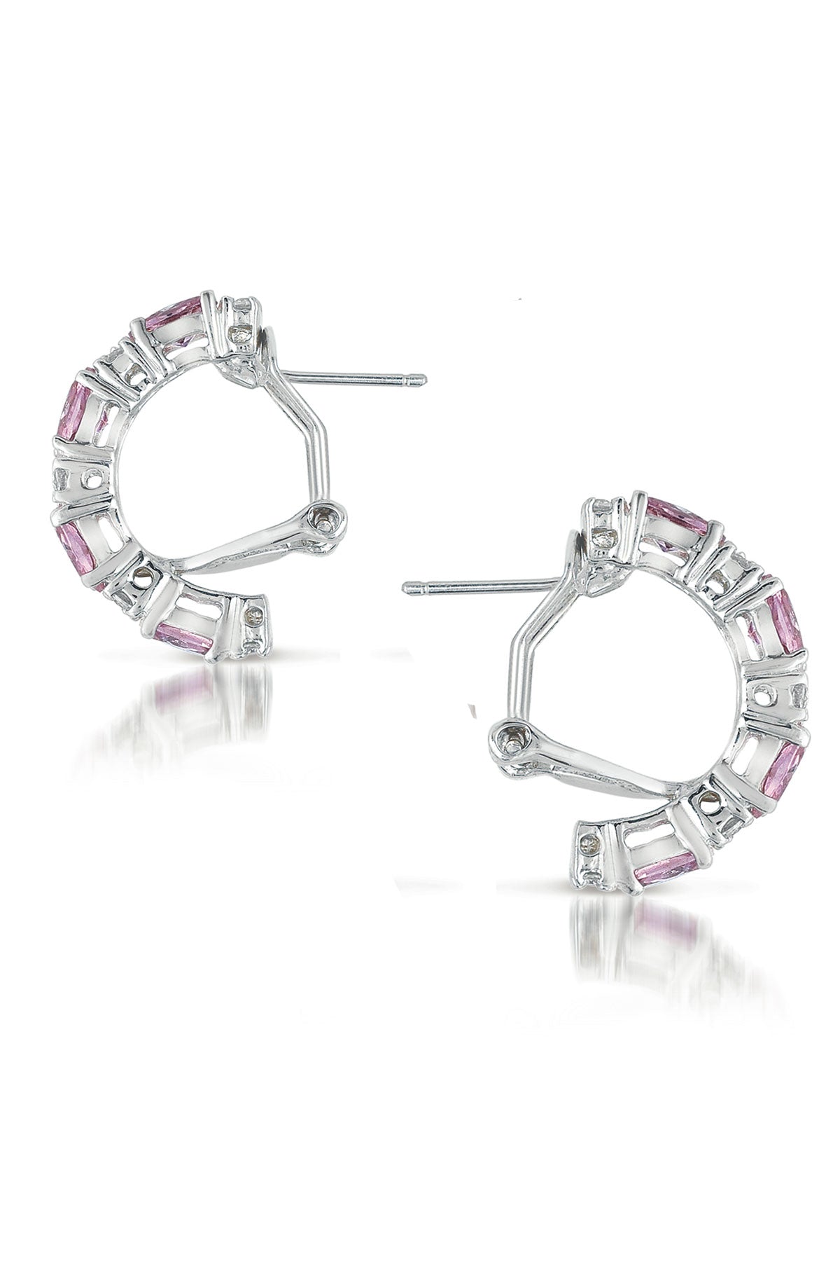 Stylish .925 Sterling silver pink cubic zirconia petite hoop earrings. These delicate hoops are a must and feature pink oval cubic zirconia stones changing alterably with small clear round cubic zirconia stones set on half circle silver frame. Crafted of .925 Sterling silver with rhodium plating and secure with butterfly closure. Also comes in different stone color and plattings.