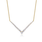 A glittering cascade of round brilliant cut cubic zirconias are prong set in a dazzling cluster on this chevron pendant. A delicate cable chain and lobster clasp keep this chic layering necklace secure, all finely crafted in 14k yellow gold plated sterling silver. Available in different stone color options.