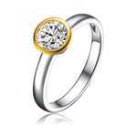 Simple but elegant design, the circular gold plated .925 sterling silver gives an emphasis on how classy this sterling silver ring is. Topped with a circular shaped white cubic zirconia brings out an elegant glow on this ring.