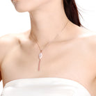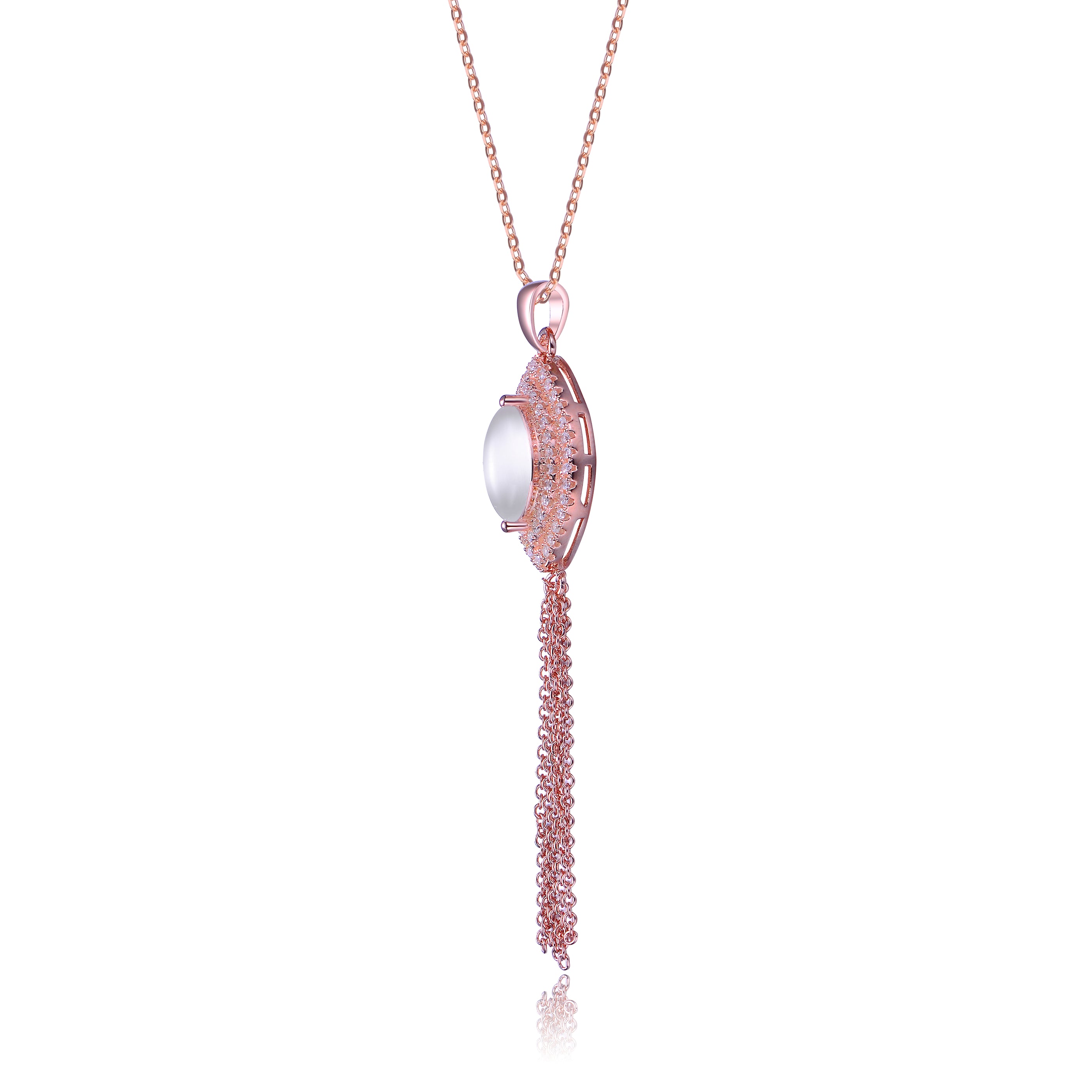 Jewelry sets are definitely in style and this rose gold overlay necklace can be paired with matching earrings. This necklace also uses a beautiful frosty white stone and a dangling tassel.