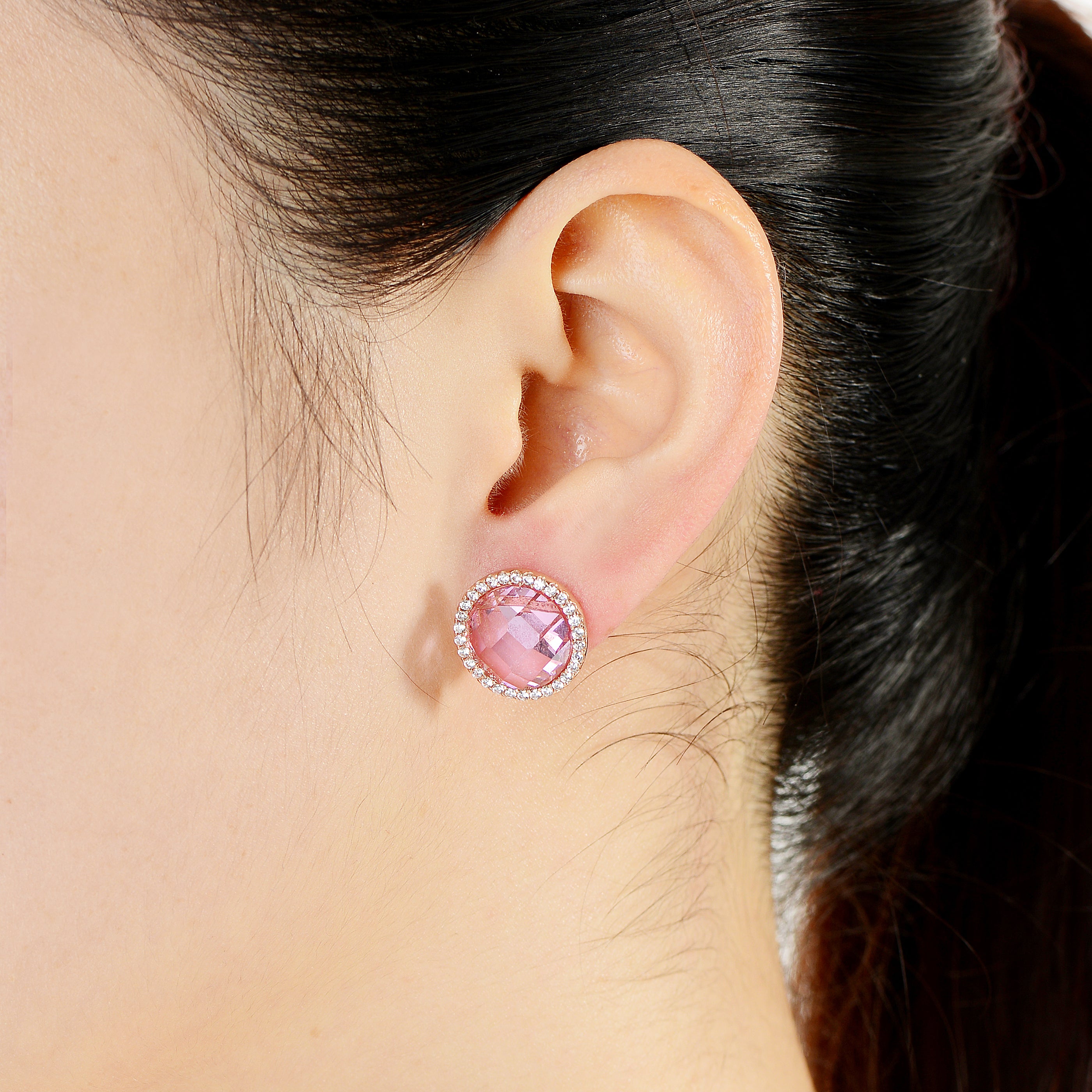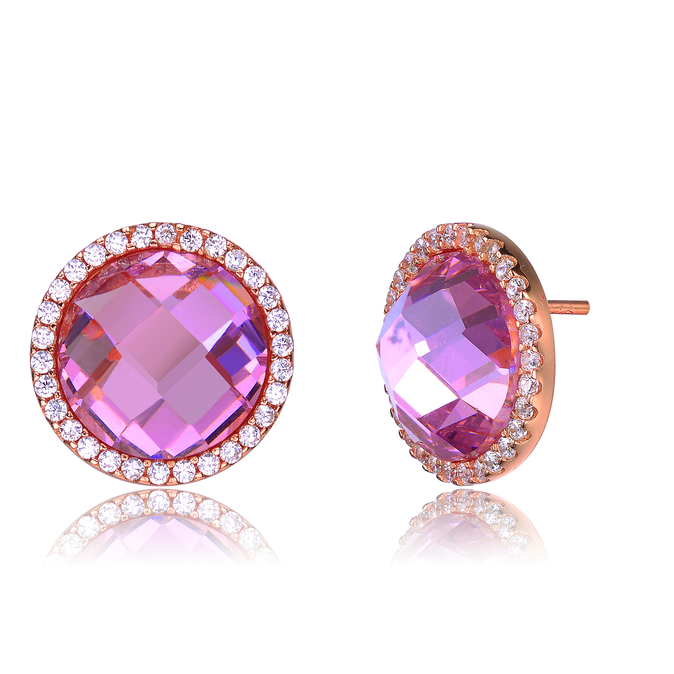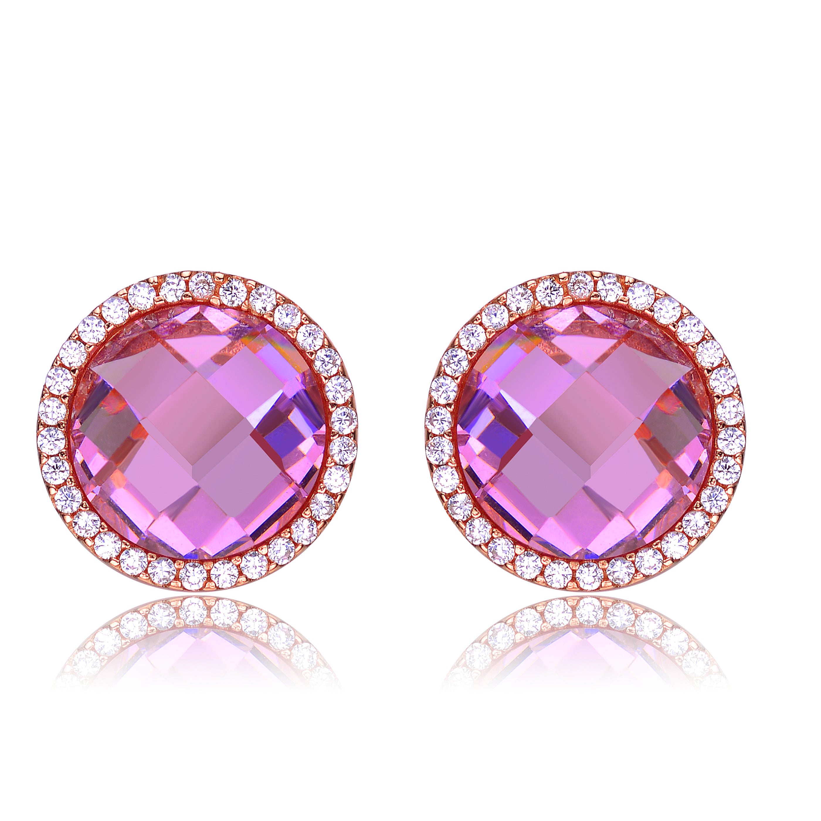 A large circular how lite solitaire sits at the core of this rose gold overlay button earrings. This set makes a splendid heirloom piece.