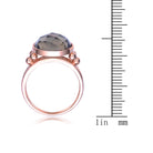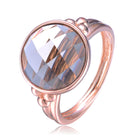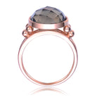 This dainty rose gold overlay ring is perfect for those who prefer subtle styles. It showcases a large smokey cubic zirconia solitaire and a nice detail in the band.