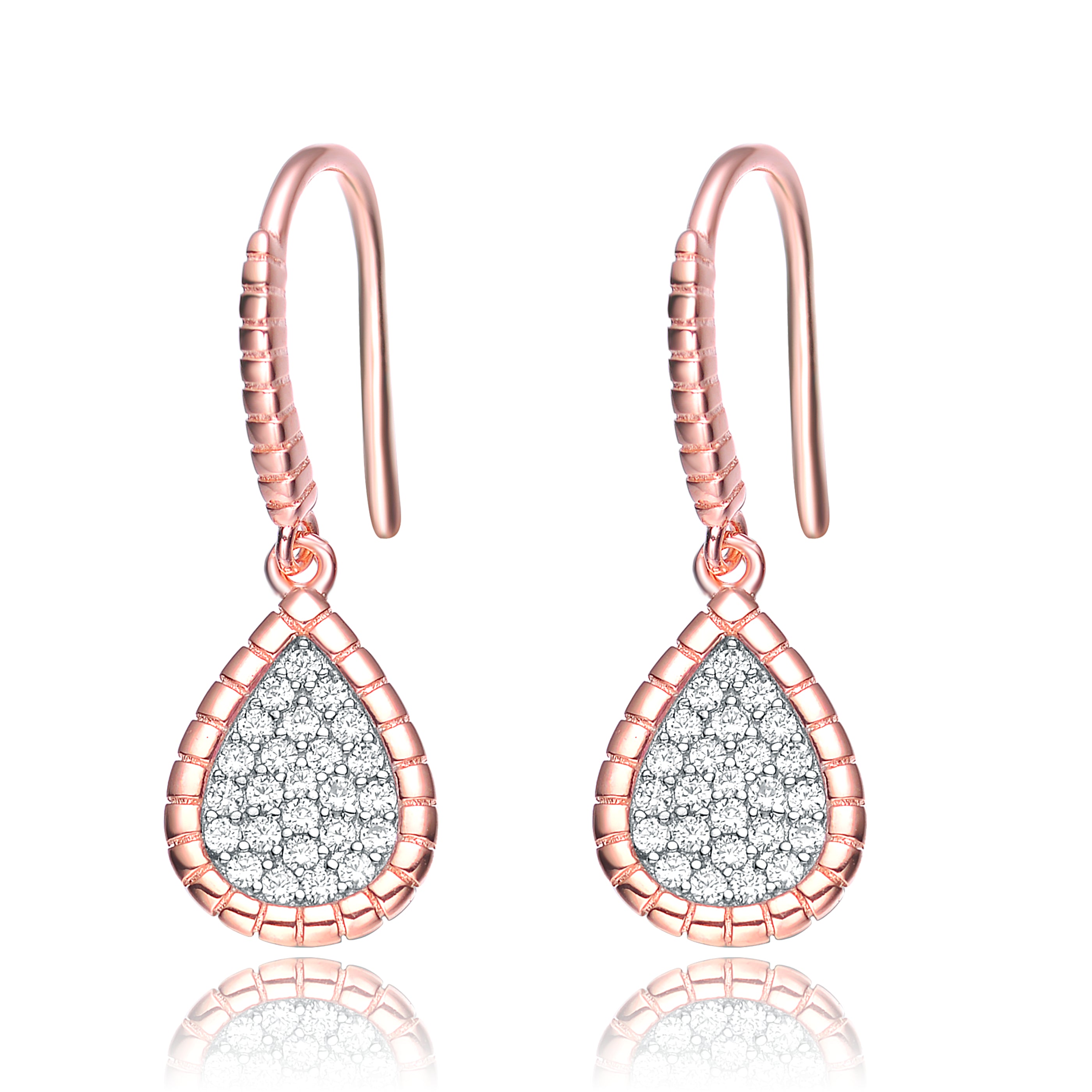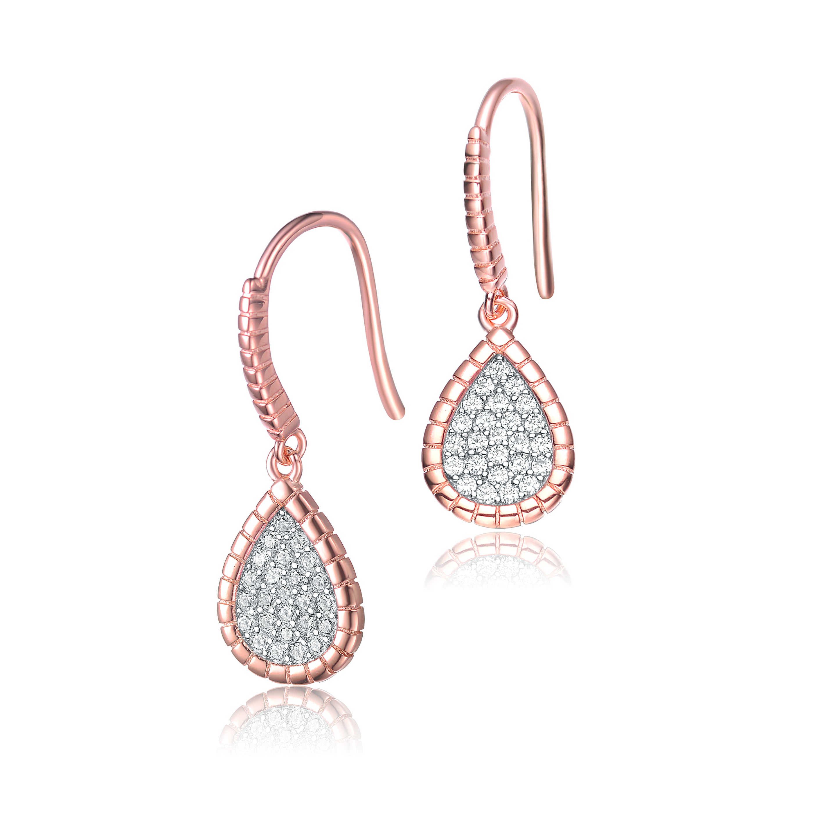 Rose Gold Plated Clear Cubic Zirconia Teardrop Shaped Drop Earrings