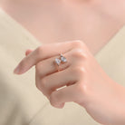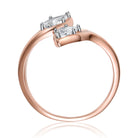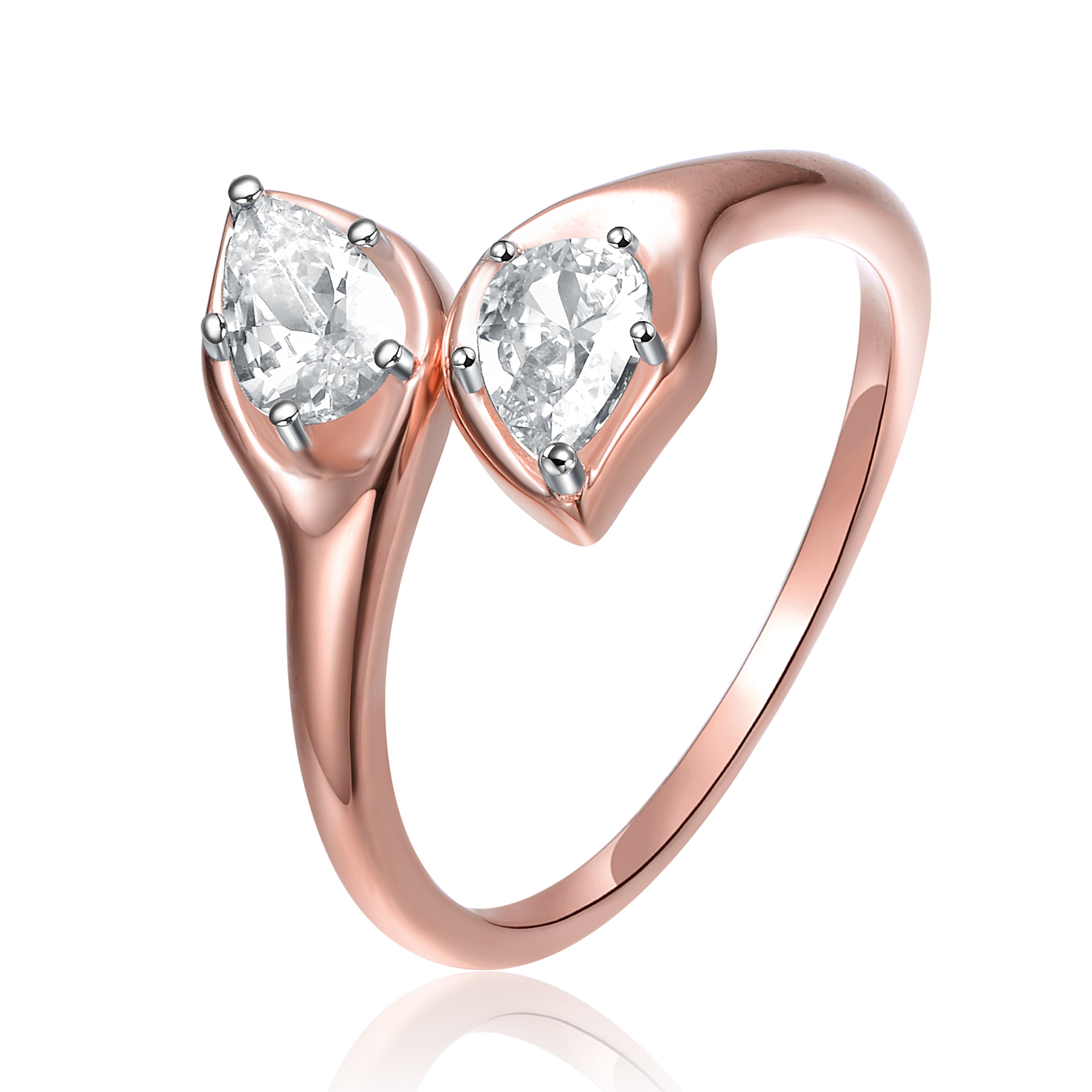 This exquisite ring features a stunning design with two pear-shaped cubic zirconia stones set in a rose gold plated sterling silver band. The intertwining design of the band adds a modern twist to the classic solitaire setting, making it a perfect blend of traditional charm and contemporary elegance. The lustrous rose gold plating enhances the brilliance of the clear cubic zirconia, creating a piece that is both eye-catching and sophisticated. Ideal for any occasion, this ring is a beautiful addition to any jewelry collection.