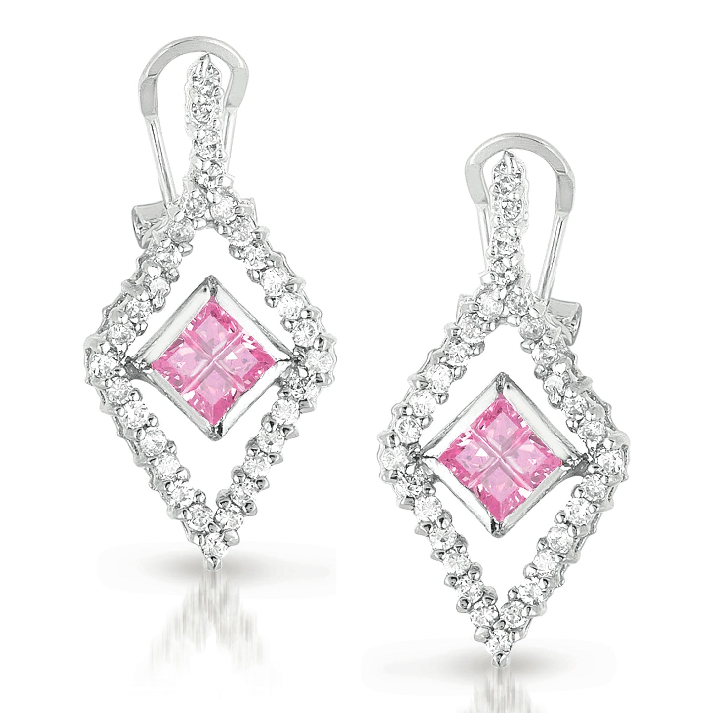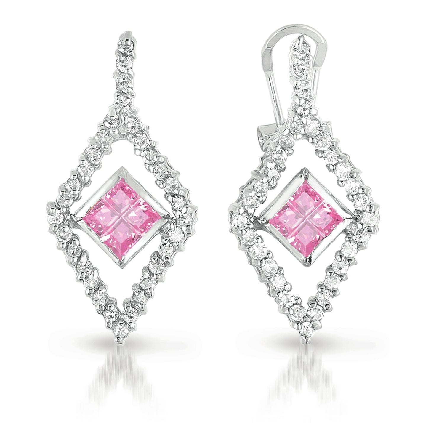 Fashionistas won’t be able to get enough of this sterling silver pair of earrings. Clear and Pinkcubic zirconia stones are used in a powerful combination.