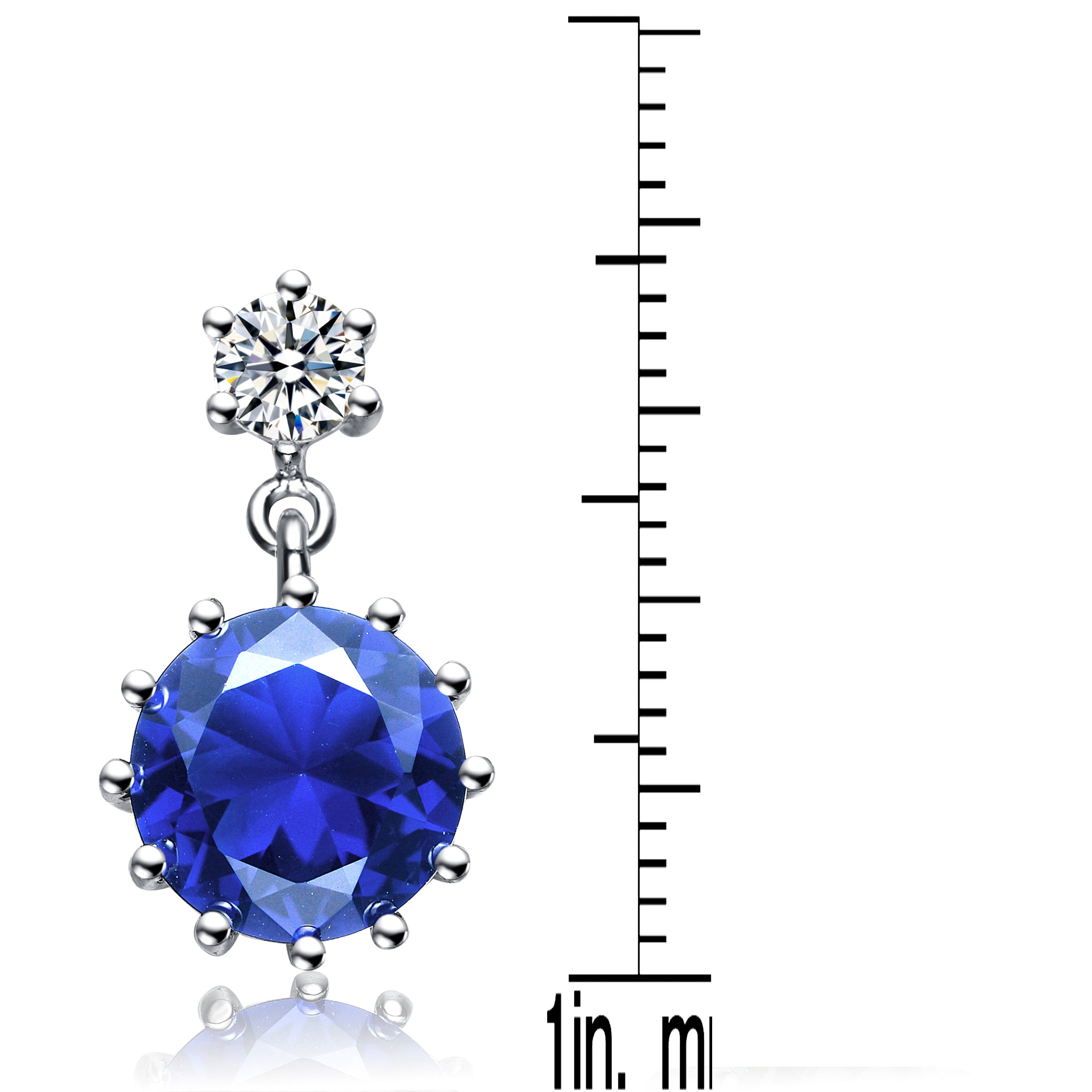 Sterling Silver Cubic Zirconia White Gold Plated. These elegant earrings are ideal for an elegant evening out. features a round shaped Emerald big Cubic Zirconia stone is the focal point which is held back in Sterling Silver of these earrings, and is accented with a cluster of white Cubic Zirconia solitaires. Also available in sapphire cubic zirconia.