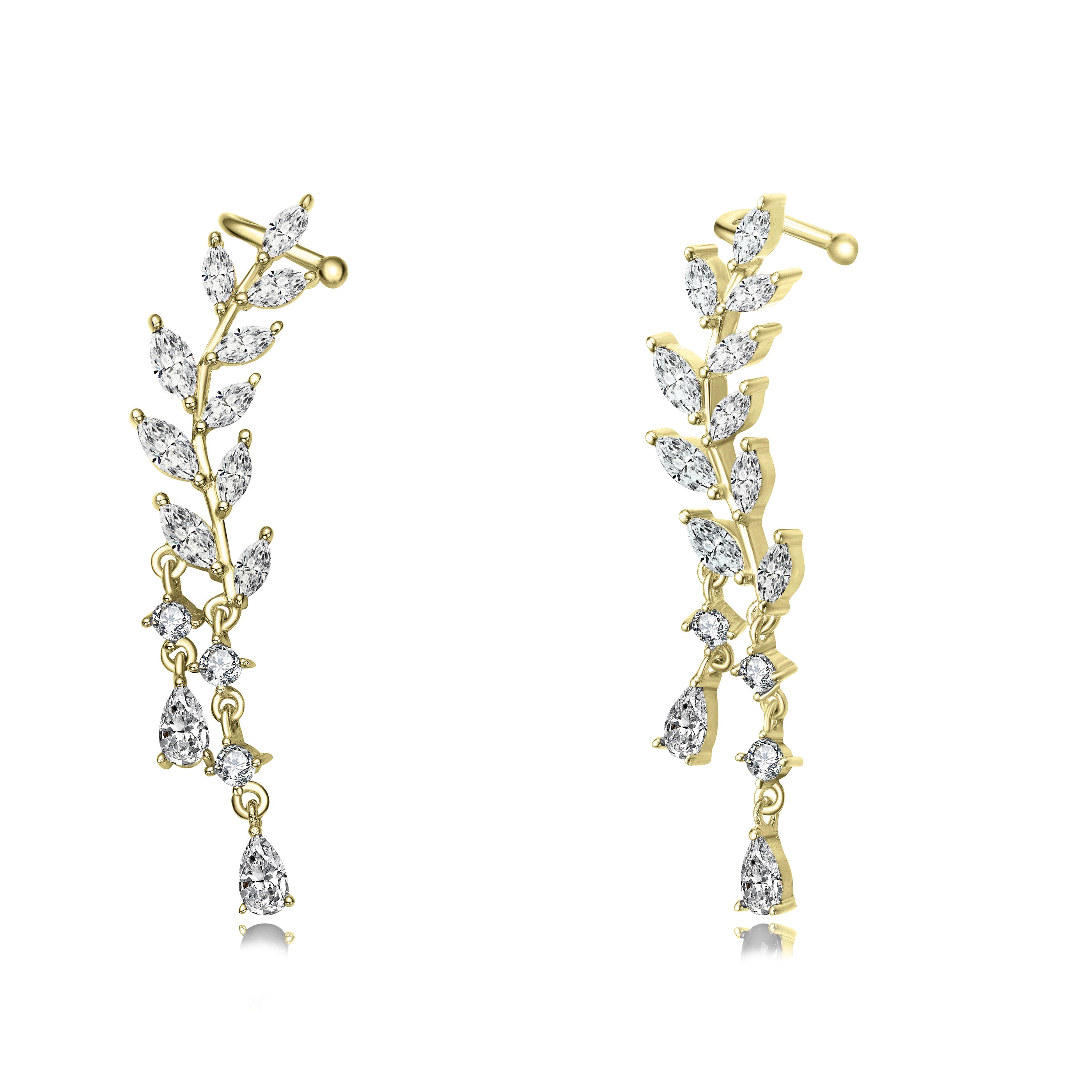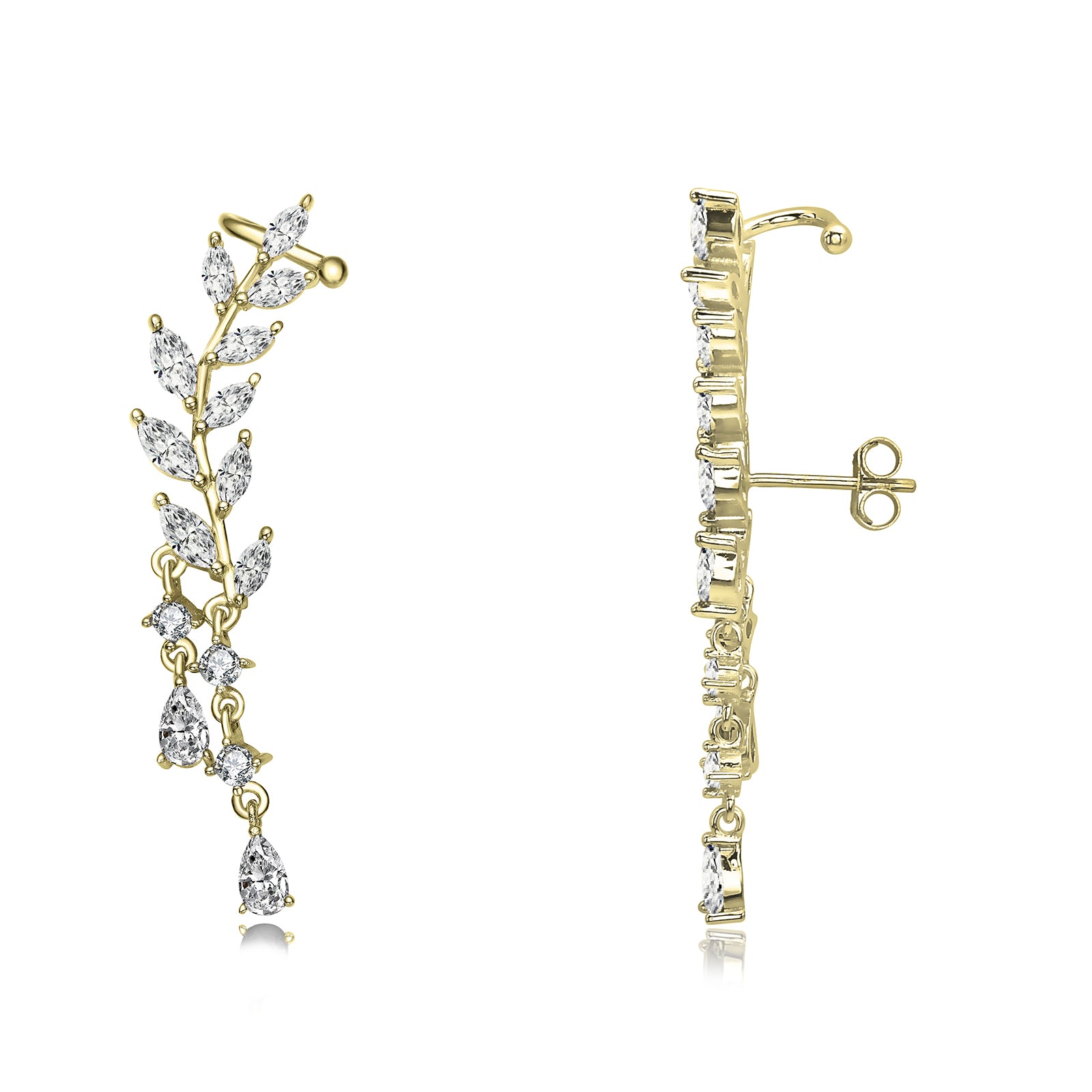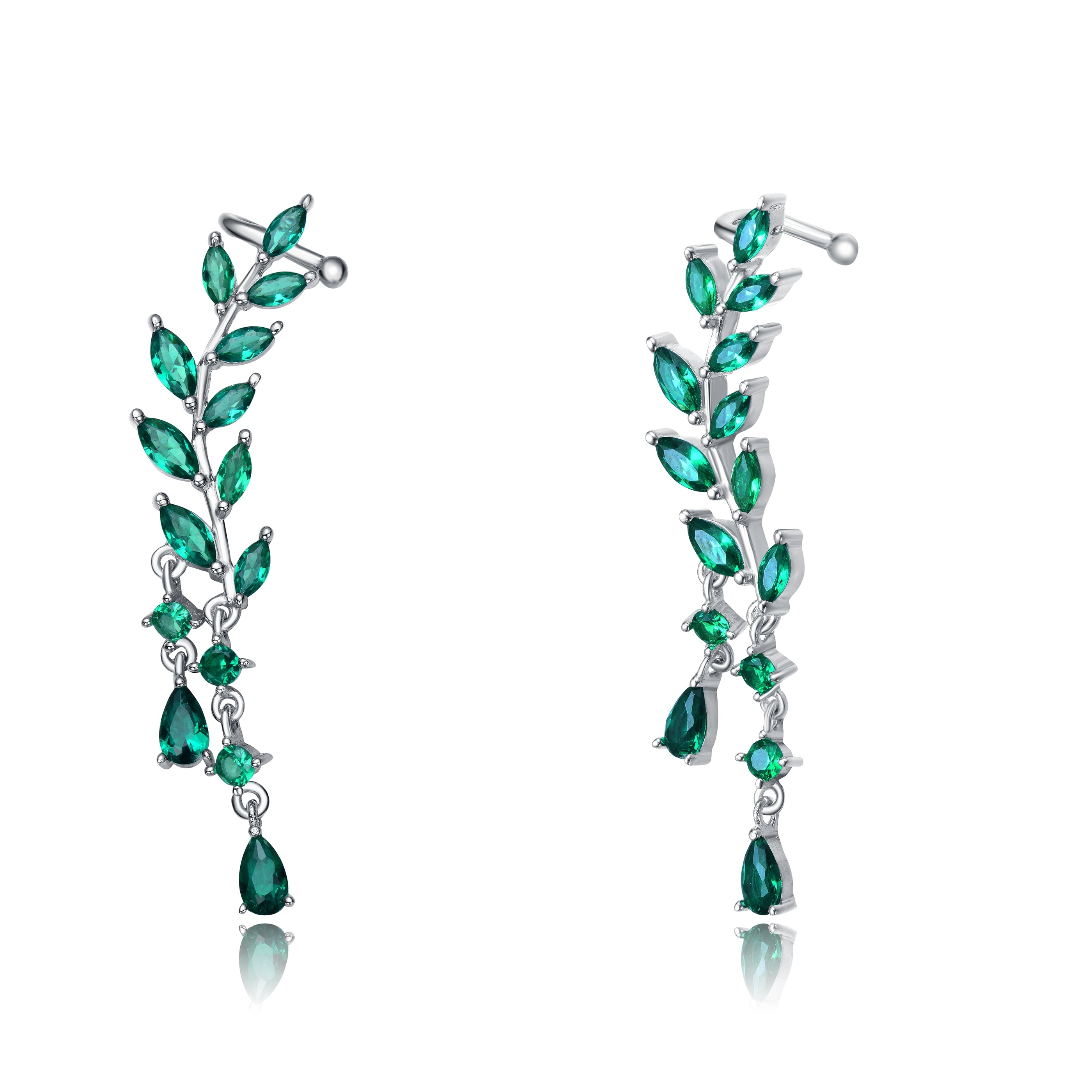Sterling Silver with Cubic Zirconia Ear Cuff Earrings. Elegant Sterling Silver Emerald Cubic Zirconia Stud Earrings. These dainty stud earrings are decorated with clear round-cut and green marquise and pear cubic zirconia stones. Featuring Green Shimmery leaves Crafted of .925 sterling silver, with rhodium plating, these fantastic earrings secure with butterfly clasps. Butterfly clasps keeps them safe and secure for you. Also available in gold platting with clear or Emerald cubic zirconia.