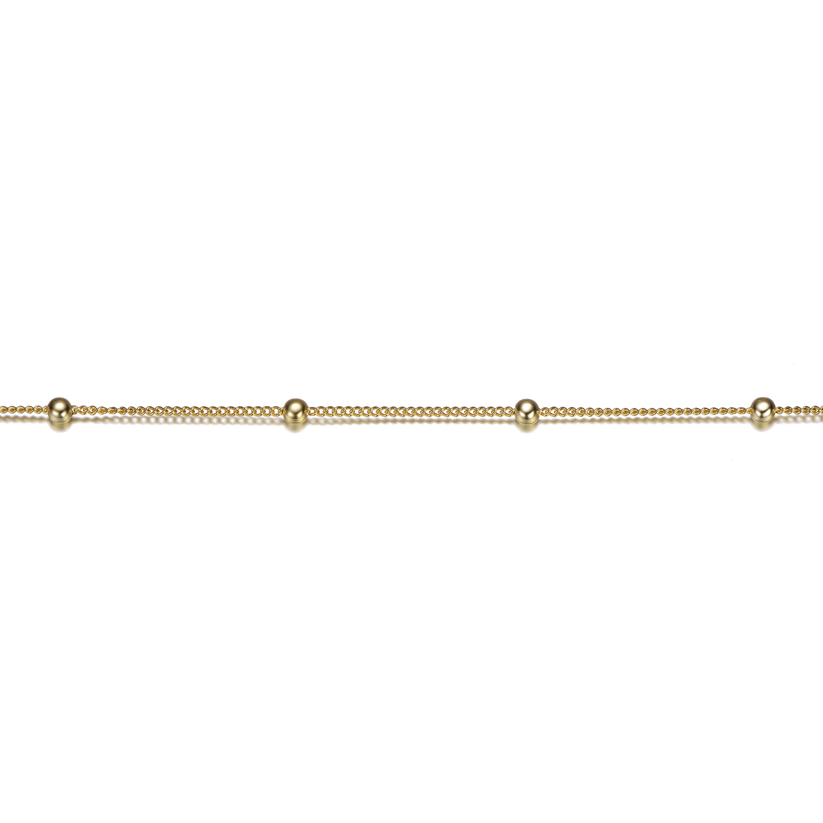 Sterling Silver 14k Gold Plated Bead Link Delicate Anklet, Adjustable Length. Add this brightly polished sterling silver anklet to your summer wardrobe, perfect for highlighting your favorite shoes and outfit. The 14k gold plated beads give this graceful anklet a contemporary style, making it effortless for complementing your gold or silver jewelry. A lobster clasp keeps this anklet secure, along with an extension chain for your most comfortable length. Indulge in all the hottest trends with a beautiful anklet that is understated yet made to get noticed. Anklet measures: 7" with 1.25" +2” extension.