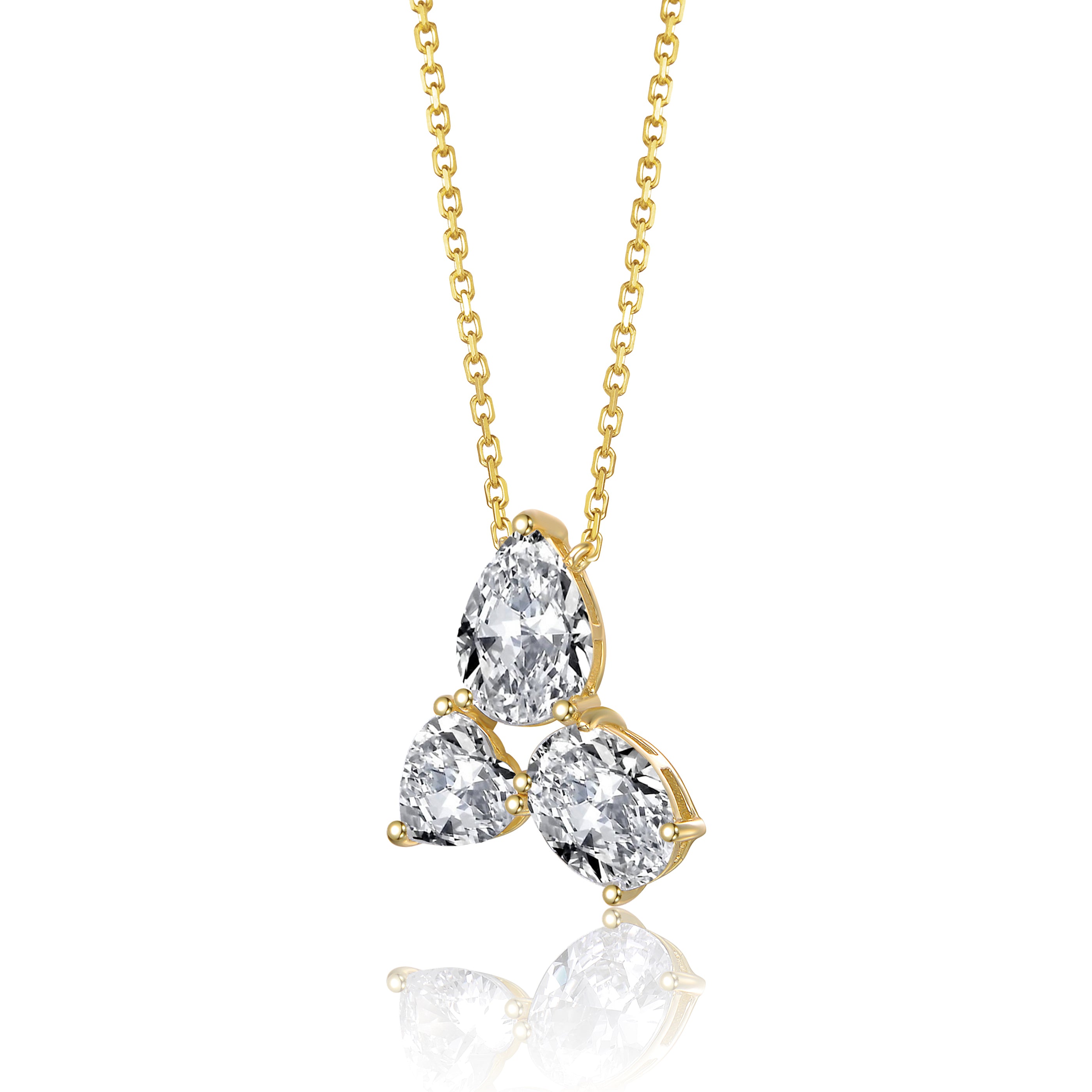 Sterling Silver 14k Gold Plated Cubic Zirconia Mixed-Cut Trio Cluster Pendant Necklace. Add vibrancy to your look with this sterling silver 14k gold plated necklace. Shimmering white cubic zirconia cluster pendant adds another level of elegance that is the ultimate choice for your layered looks--or wear it solo as the main focal point. A delicate cable chain suspends this necklace; secured by a lobster clasp. Necklace measures 16+2" extension.