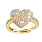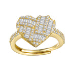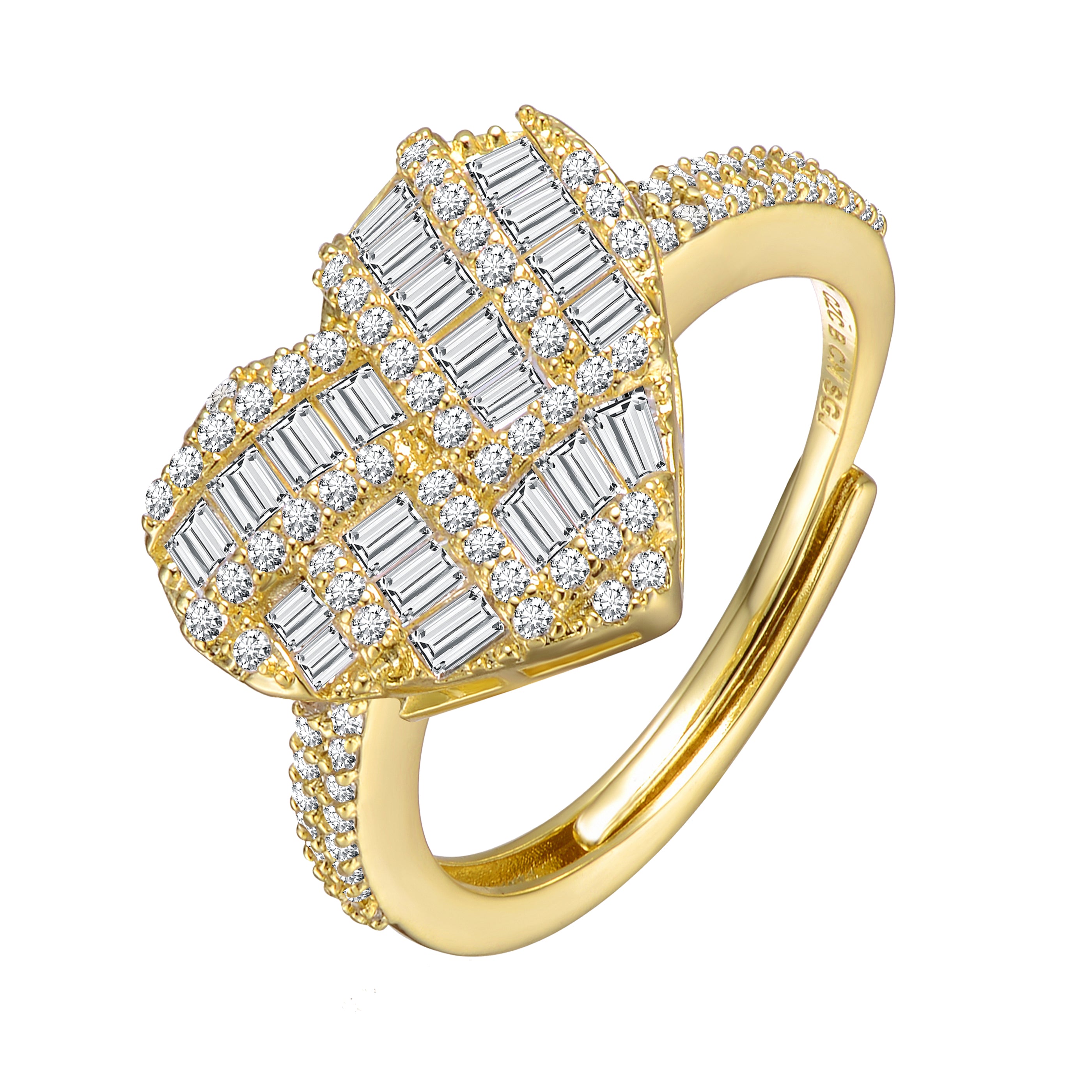 Sterling Silver 14k Gold Plated Cubic Zirconia Puffed Heart Ring. Hearts symbolize love, happiness, and joy, making this sterling silver 14k gold plated ring the ultimate selection as a gift to any loved one or a treat to yourself. Baguette cut and round brilliant cut cubic zirconia prong set on the puffed heart brings it to life with chic style and glamor, set on a slim band studded with more stones. Ring is adjustable in size, accommodating different ring sizes.