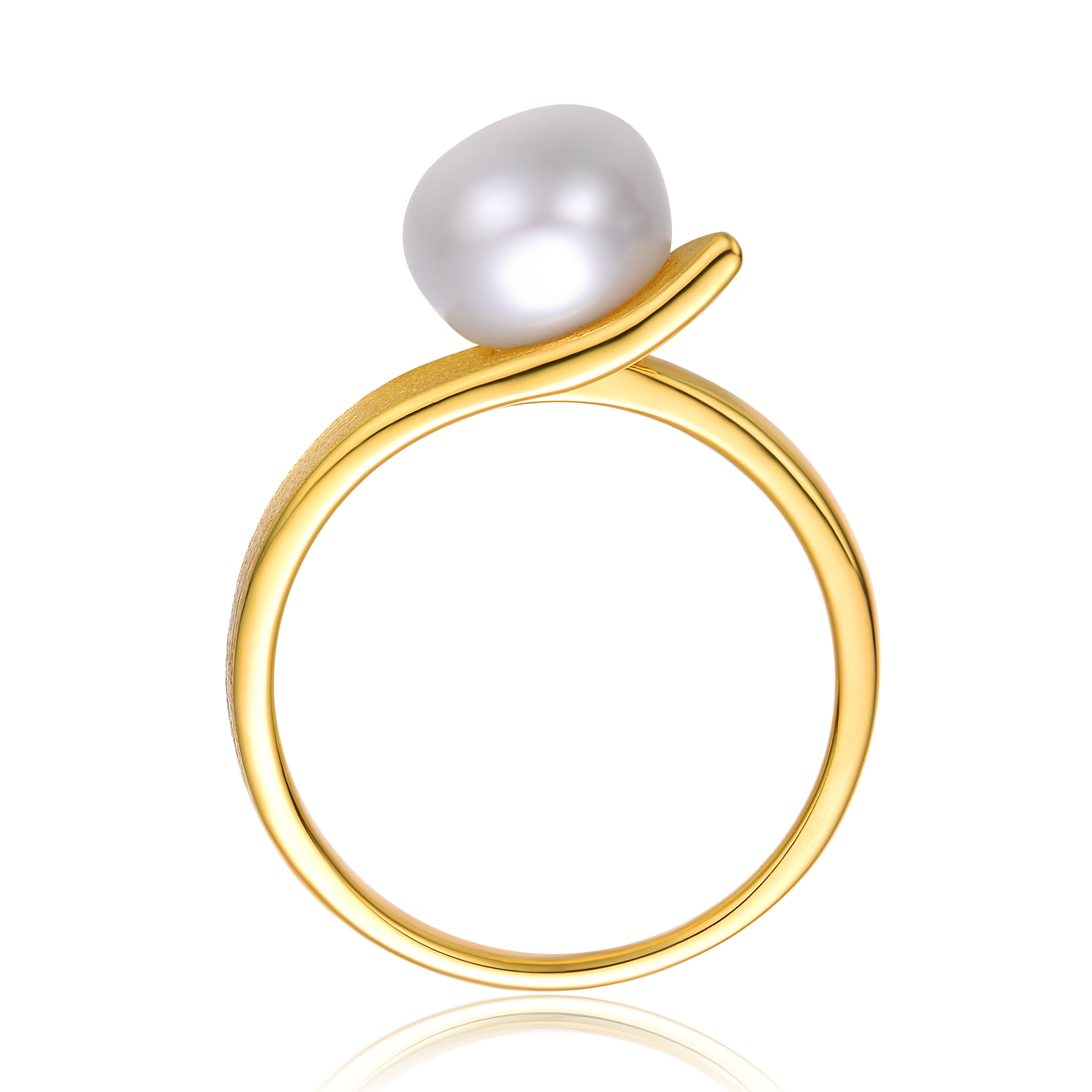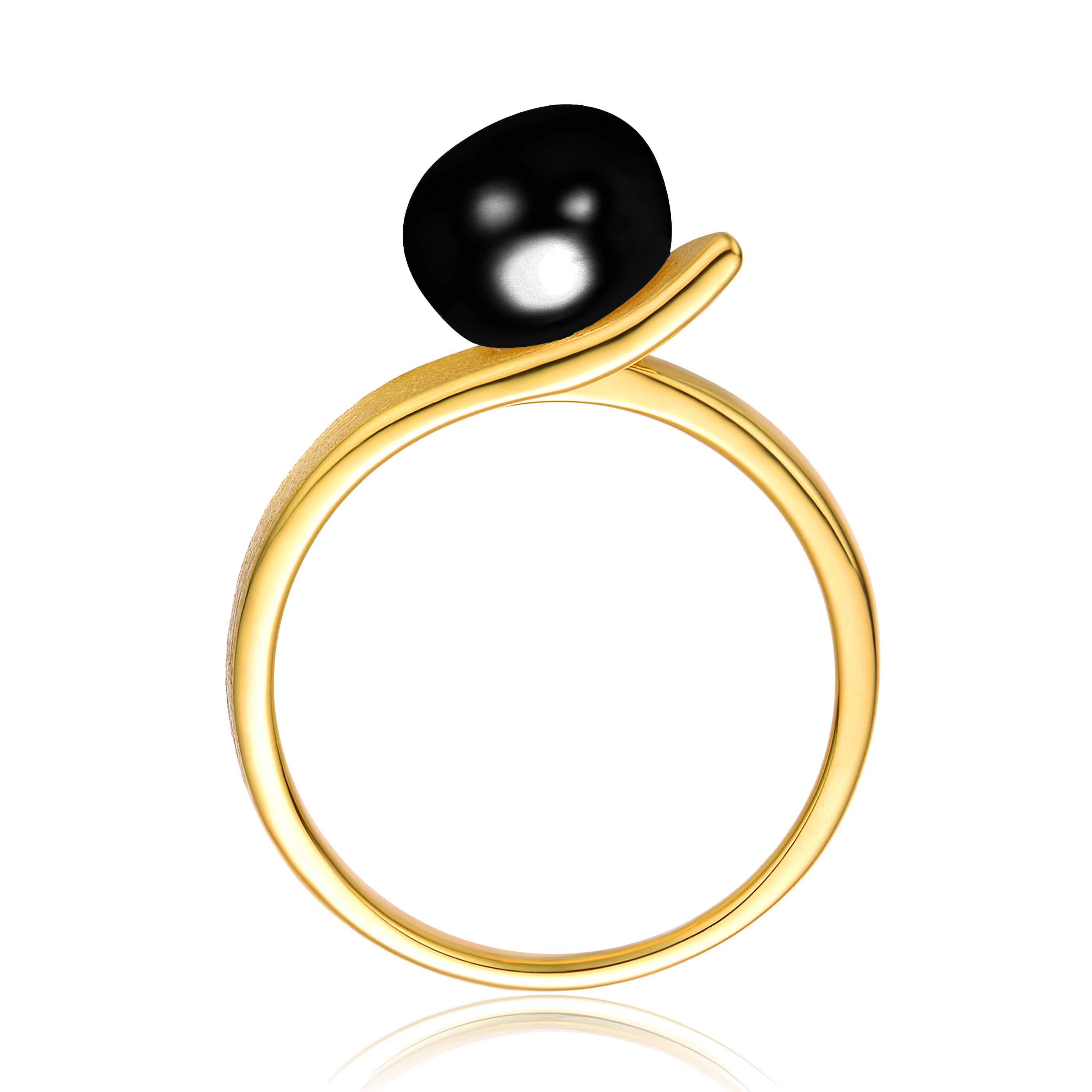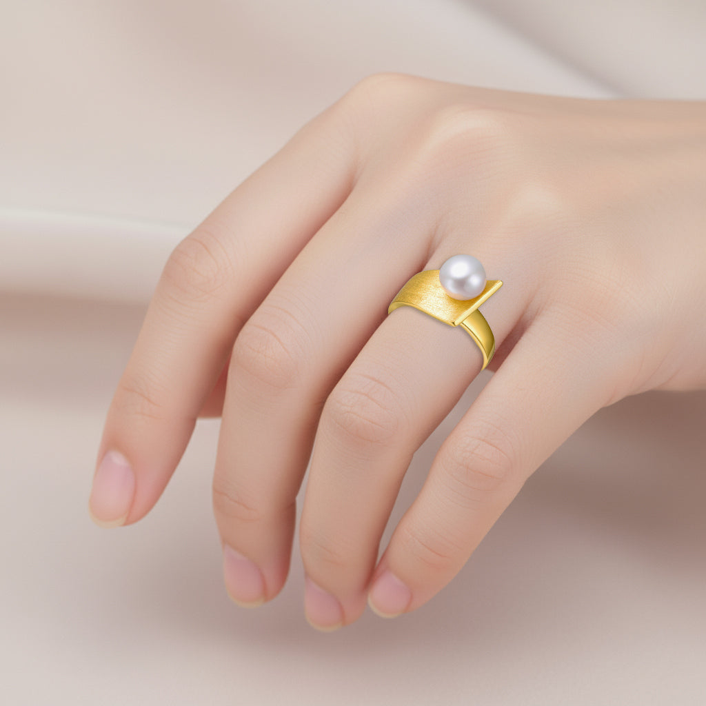 Sleek and sophisticated, this sterling silver ring is finished with luxurious 14K gold plating and showcases a striking linear design. An 8 mm round gemstone is set along the wider band, creating a bold yet refined focal point that adds a modern edge to any look. Designed for effortless styling and everyday elegance, this statement ring makes a thoughtful gift or a distinctive addition to your jewelry collection.