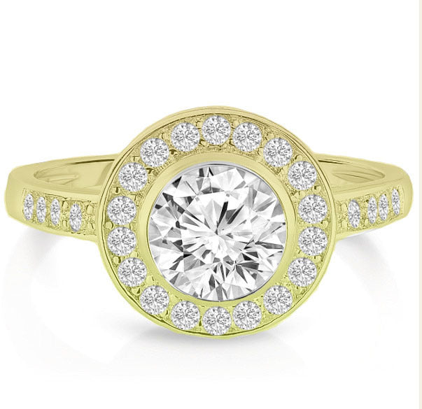 Sterling Silver 14K Gold Plated Cubic Zirconia Clear Bezel-set Cubic Zirconia Ring. This clear cubic zirconia ring features a large, dazzling stone surrounded by smaller, stunning stones in striking, highly polished sterling silver mounts. They're sure to attract attention no matter what you wear them with.
