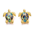 Sterling Silver 14k Yellow Gold Plated with Shimmering Abalone Shell Inlay Sea Turtle Stud Earrings