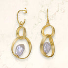 Sable Pearl Triple Hoop Golden Dangle Earrings