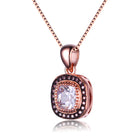 Elegance meets sophistication in this pendant necklace. Sterling silver, 18k rose gold plated, with a square morganite cubic zirconia in prong setting. Surrounding it, small cubic zirconia glisten. Finished with a secure spring ring clasp. Perfect for adding a touch of luxury to any outfit.