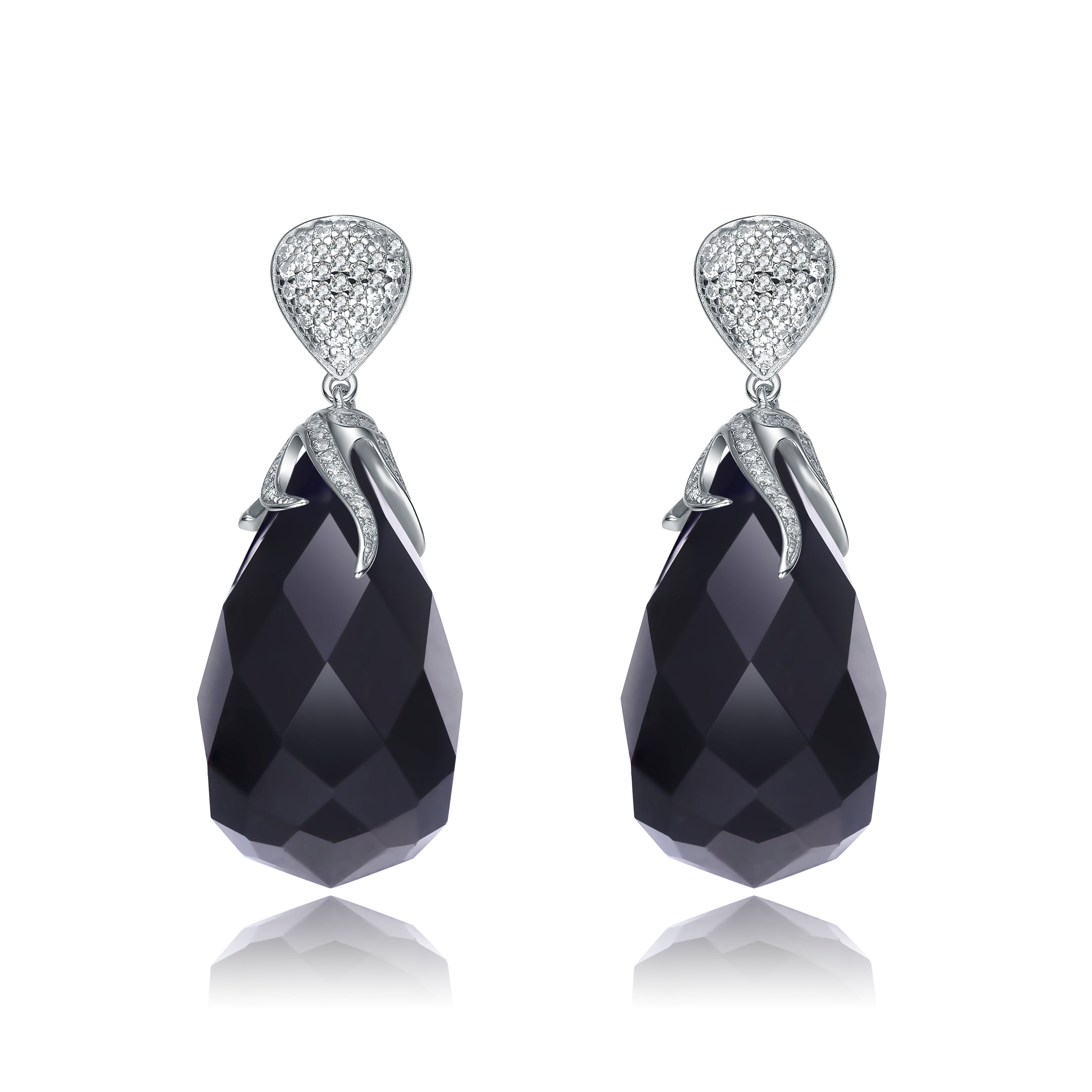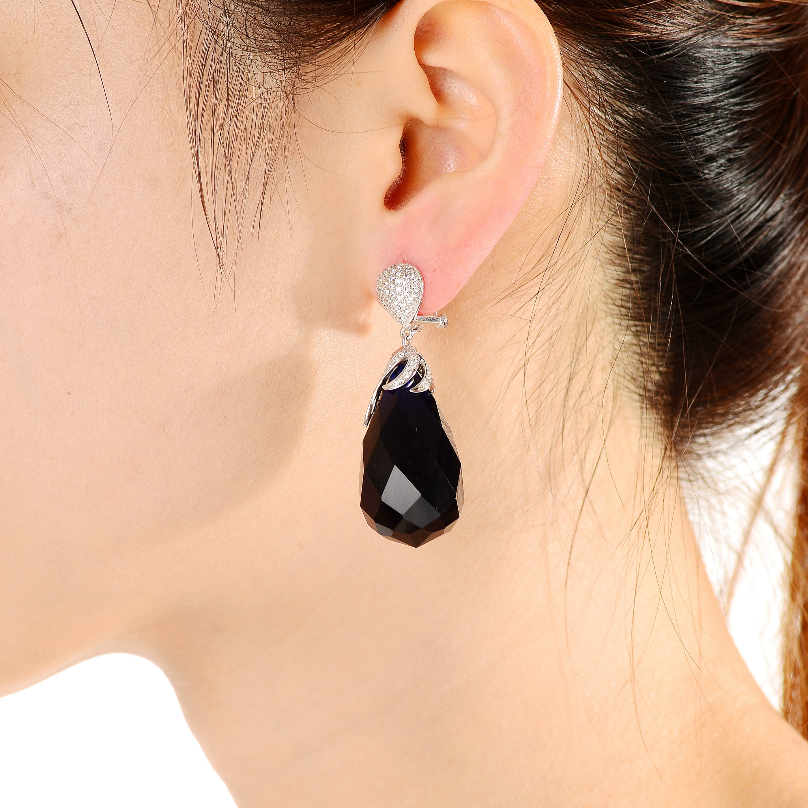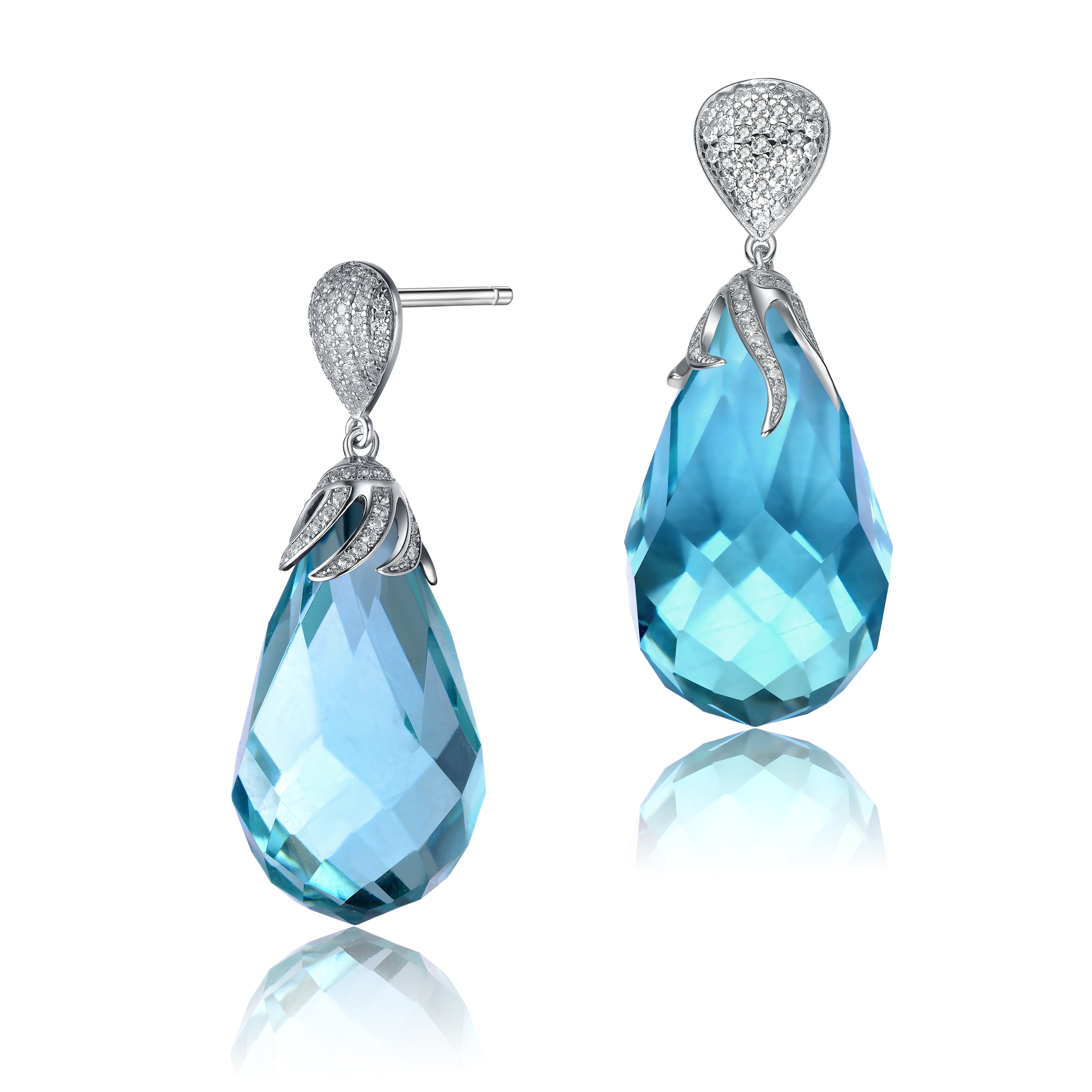 These poised earrings display magnificent blue cubic zirconia stones in a pear drop shape. Wear these earrings to your next formal function.