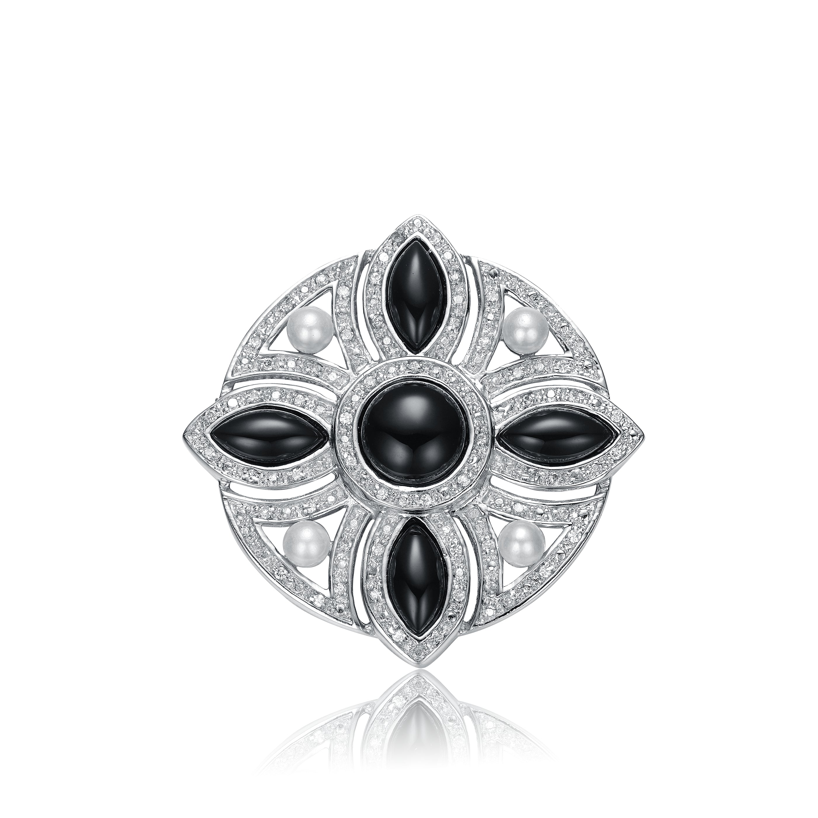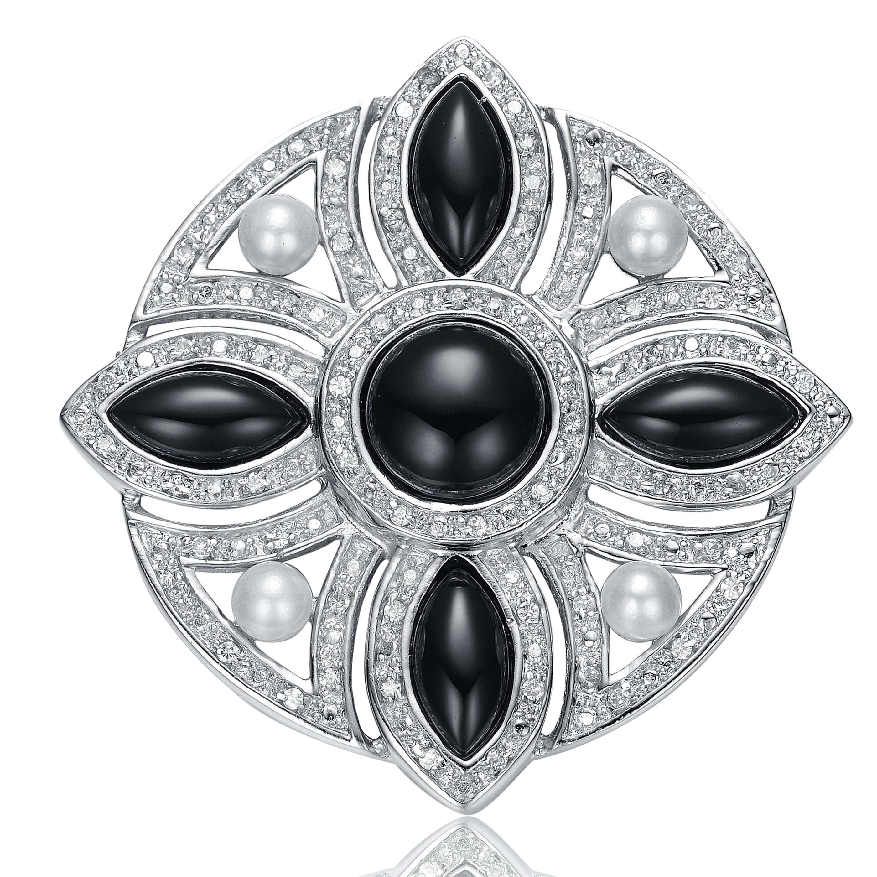 Sterling Silver Black And White Cubic Zirconia Cross Flower Pin