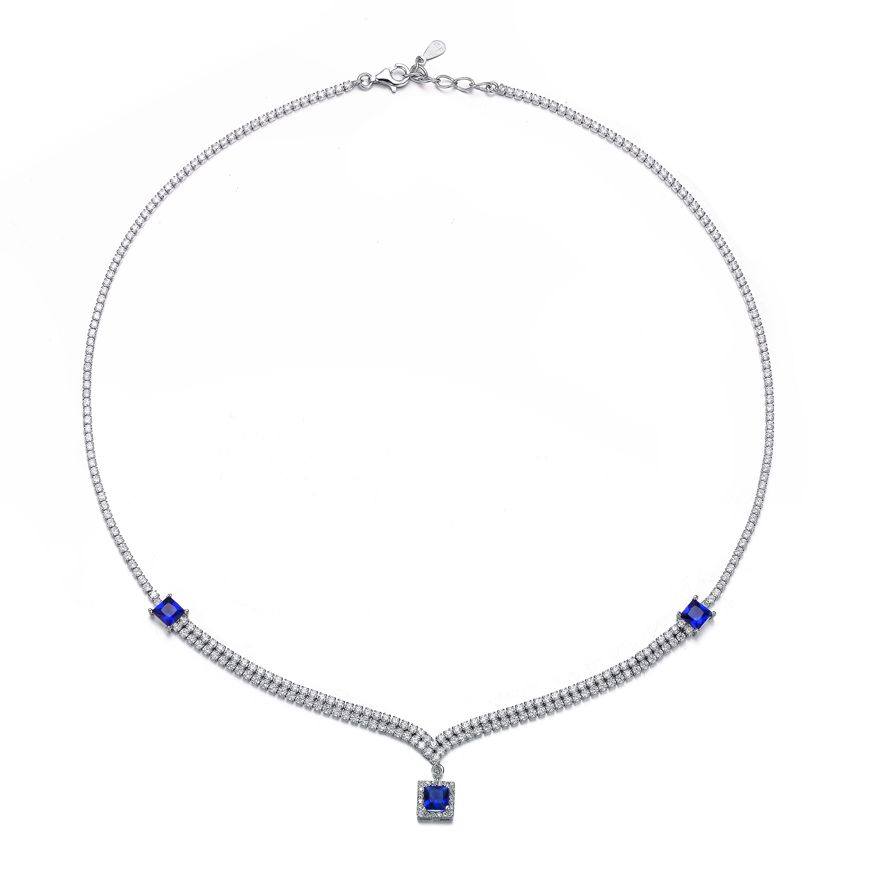 Don’t let the simplicity of this necklace fool you! The three blue cubic zirconia stones featured are guaranteed to mesmerize.