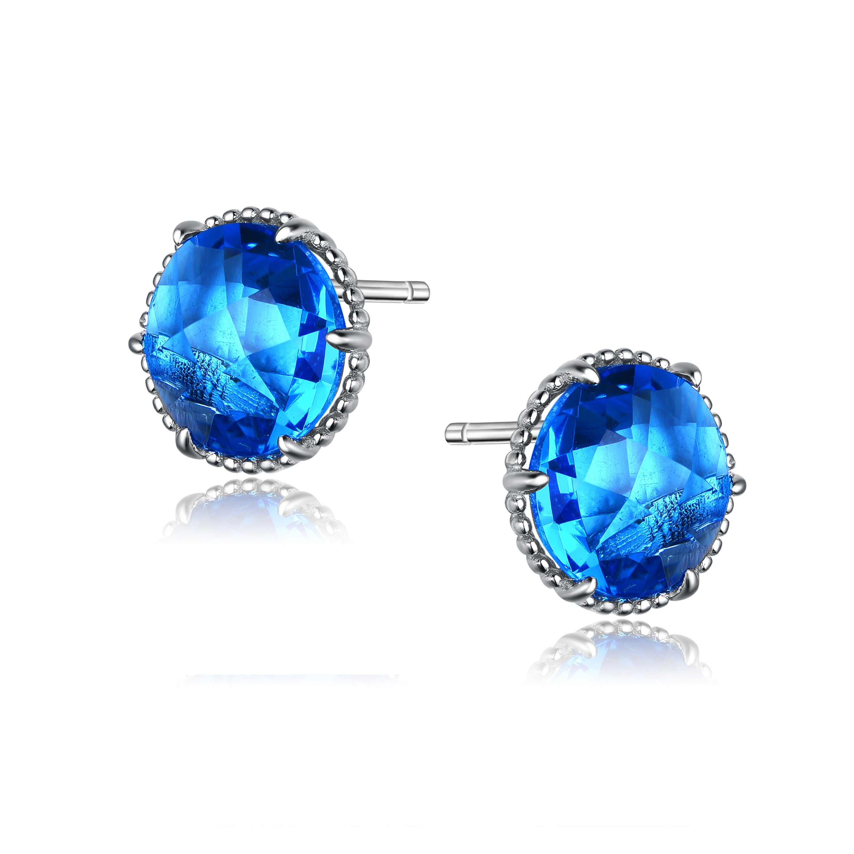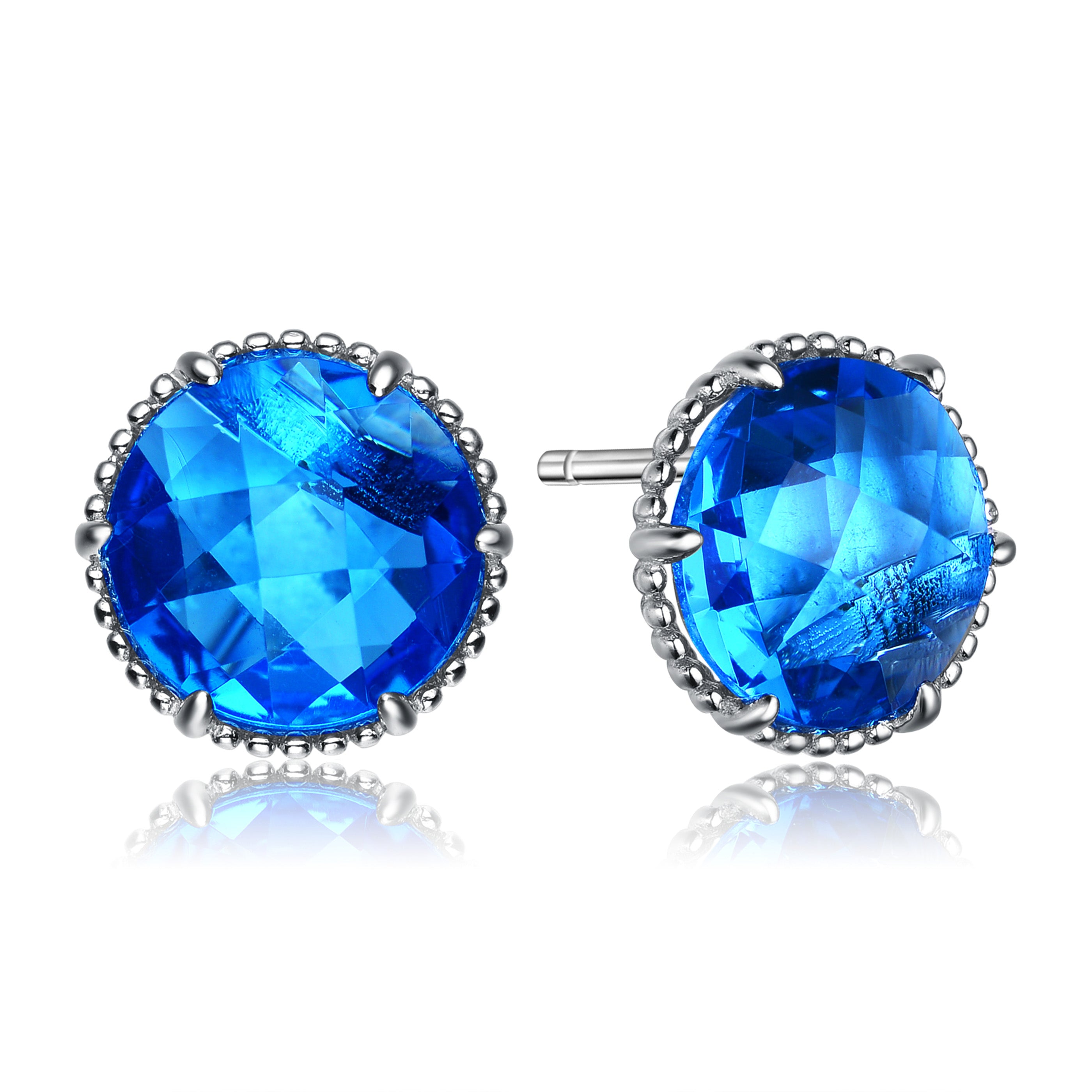 Sterling Silver Blue Round Cubic Zirconia Earring