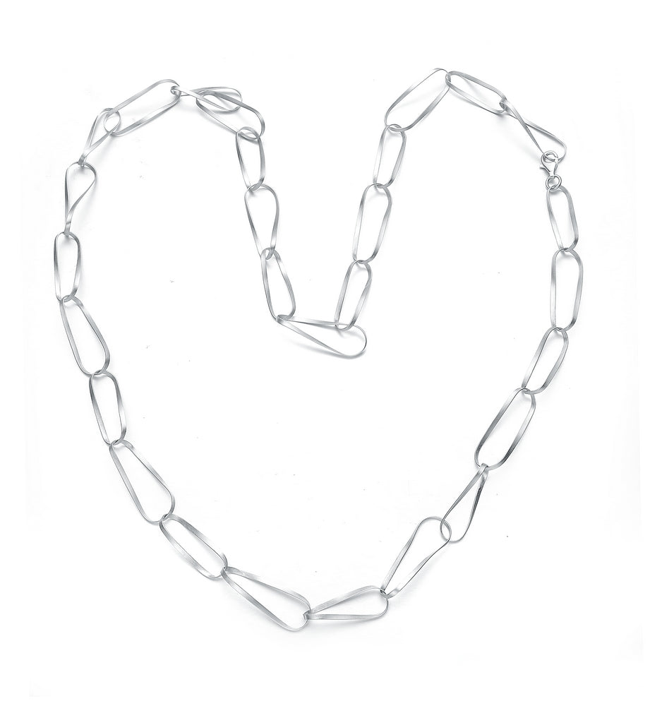 Looking for a necklace to wear to your upcoming evening event? Try this sterling silver brushed rhodium plated link neclace.