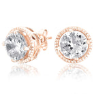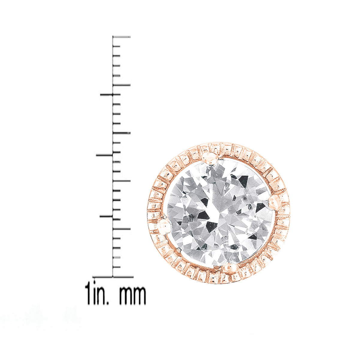 These classic earrings features a white round-cut cubic zirconia stone in prong setting. Crafted of .925 sterling silver, the earrings secure with butterfly clasps. Enjoy the versatility of the simple yet elegant design of these earrings. The affordable pricing makes it easy to own both versions to match every piece in your wardrobe. These brilliant earrings make a lovely gift for that special person on a holiday or anniversary, or even just to remind her how much she means to you. Comes in White Gold Plating, and 18K Rose Gold Plating.